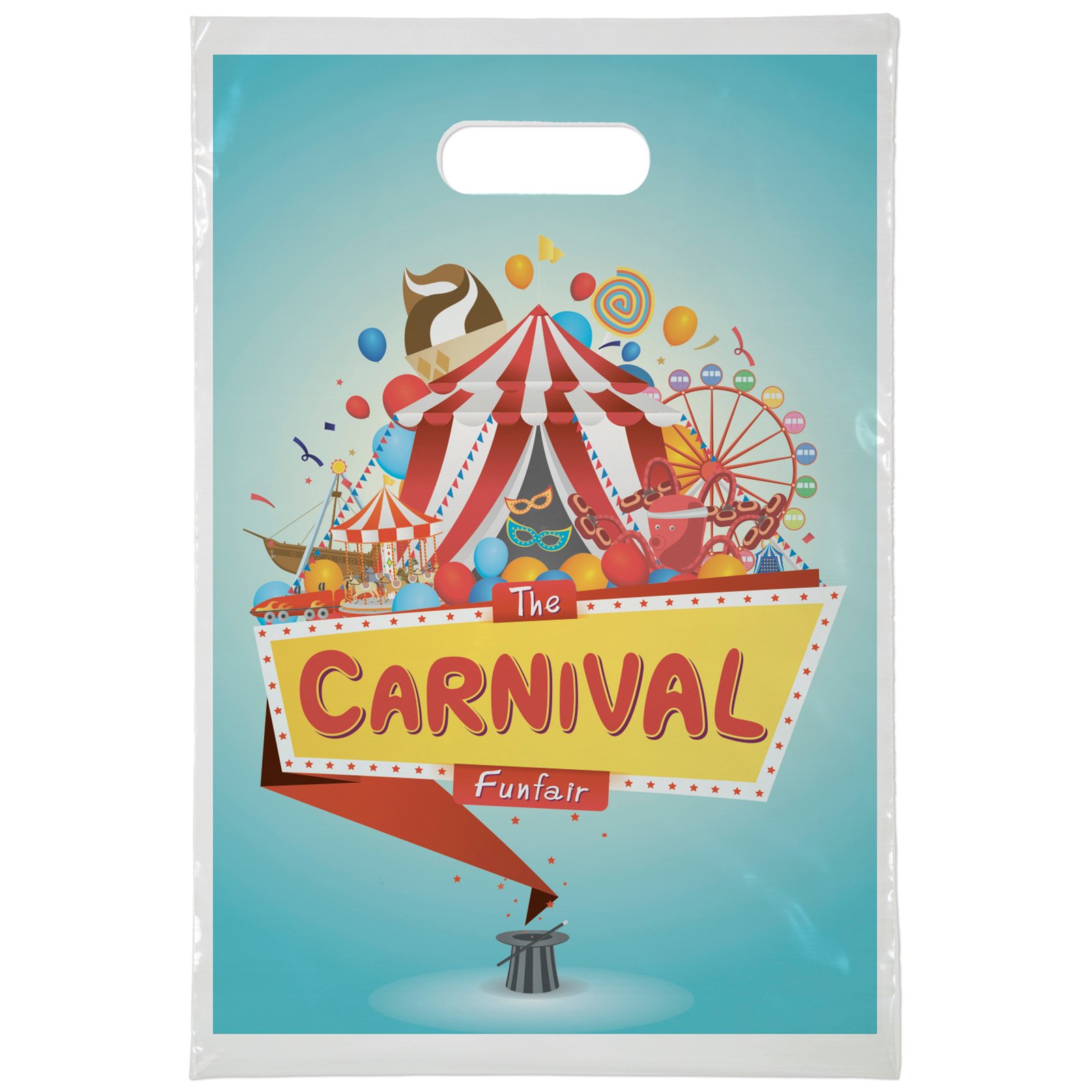 The 10W x 15H Digital Full Color Die Cut Bag is made with 2.0 mil plastic and has non-reinforced die cut handles. The Digital Full Color print process showcases artwork with crisp colors, a generous imprint area, and exceptional clarity for small fonts, fine lines, and details. 10″ W x 15″ H