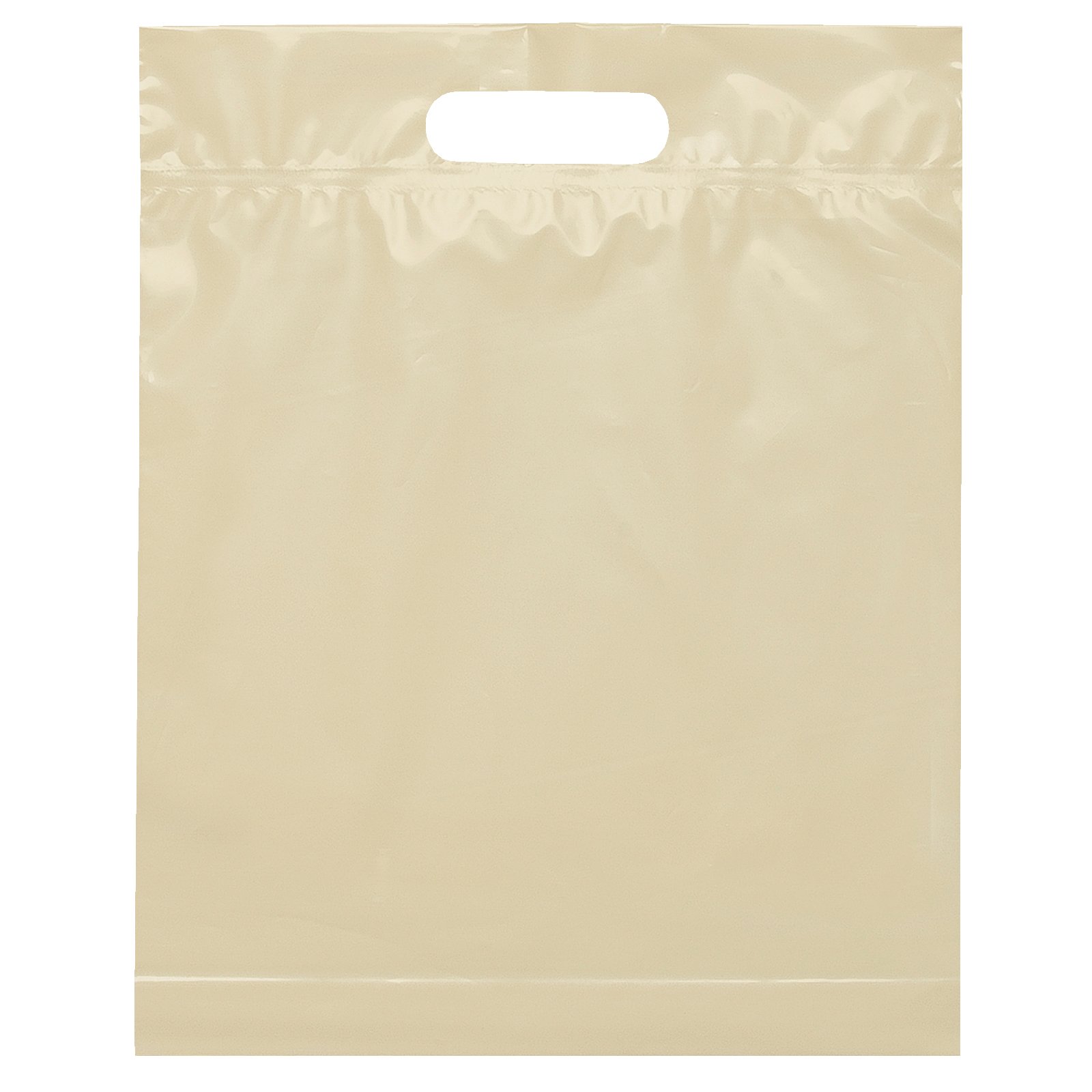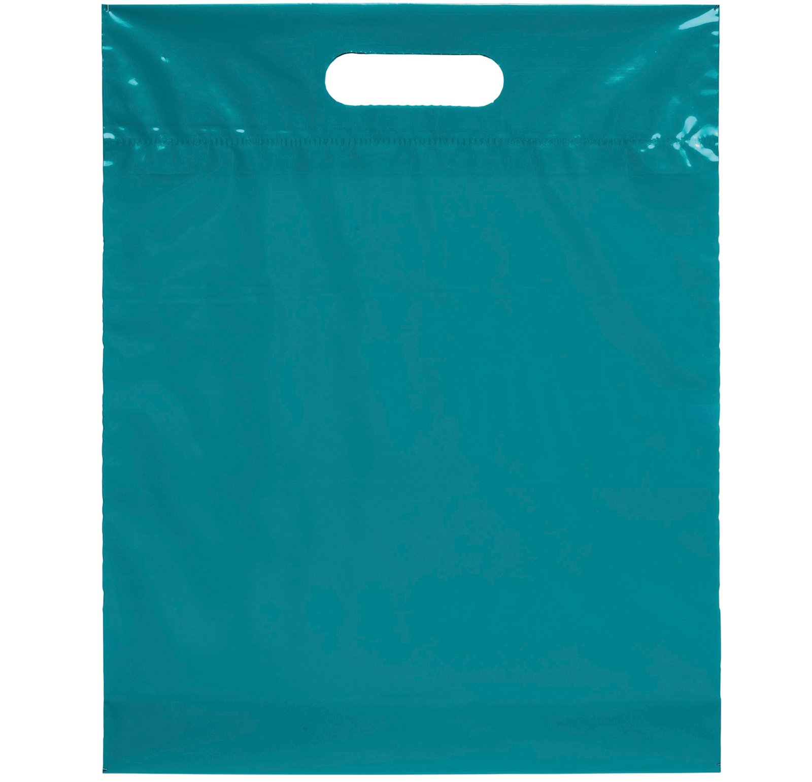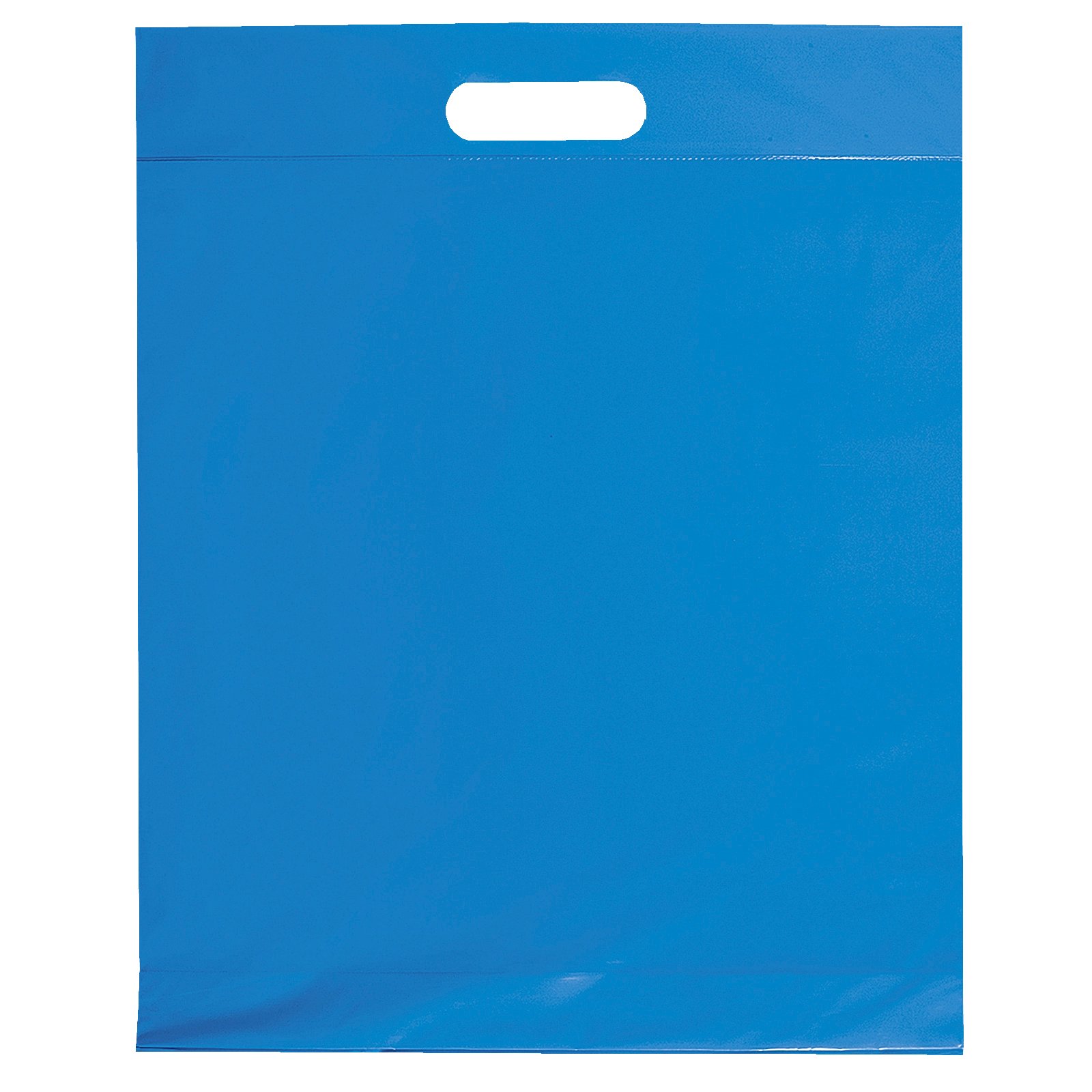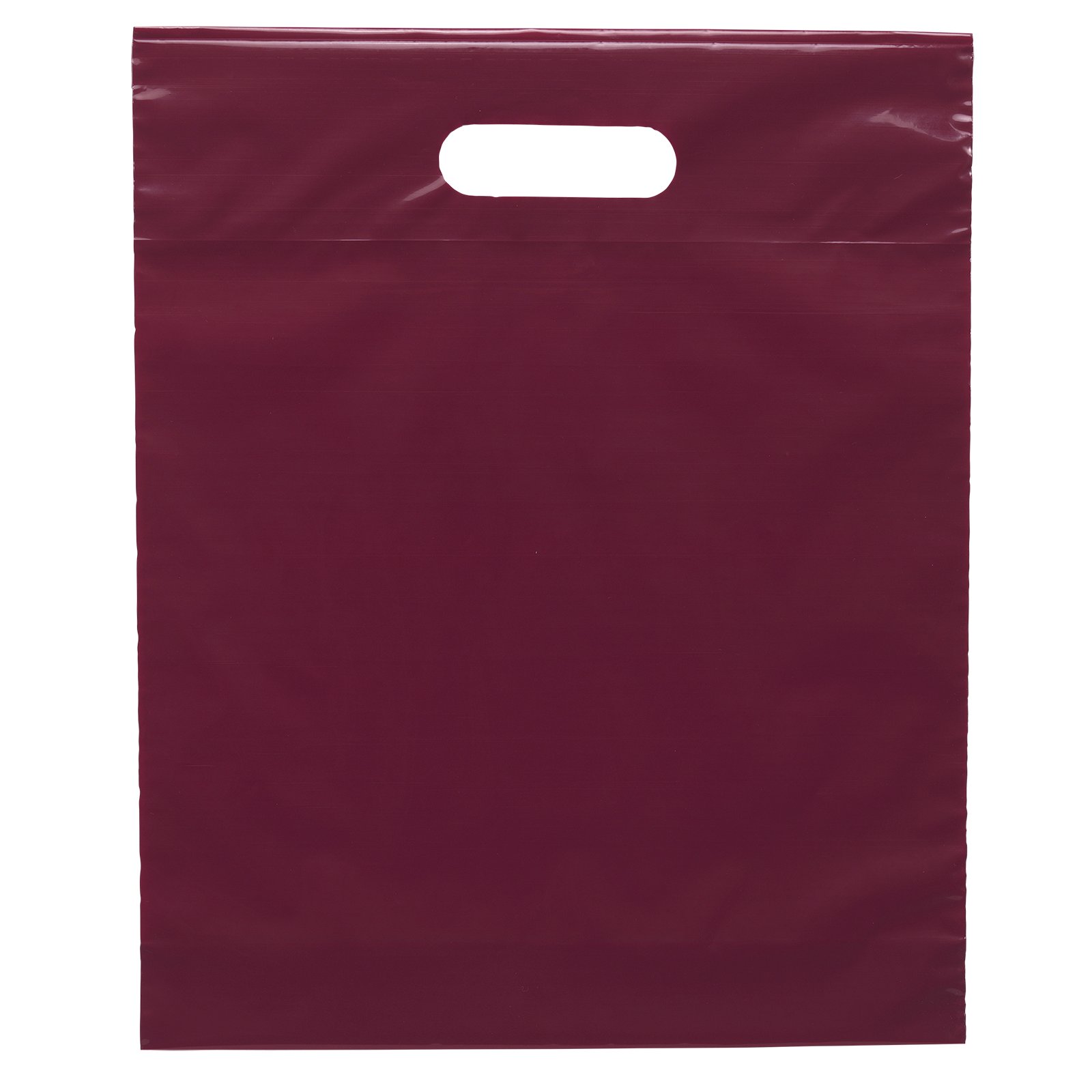 This 2.5 mil lo-density plastic bag features fold-over reinforced die cut handles and a bottom gusset. 12″ W x 3″ D x 15″ H