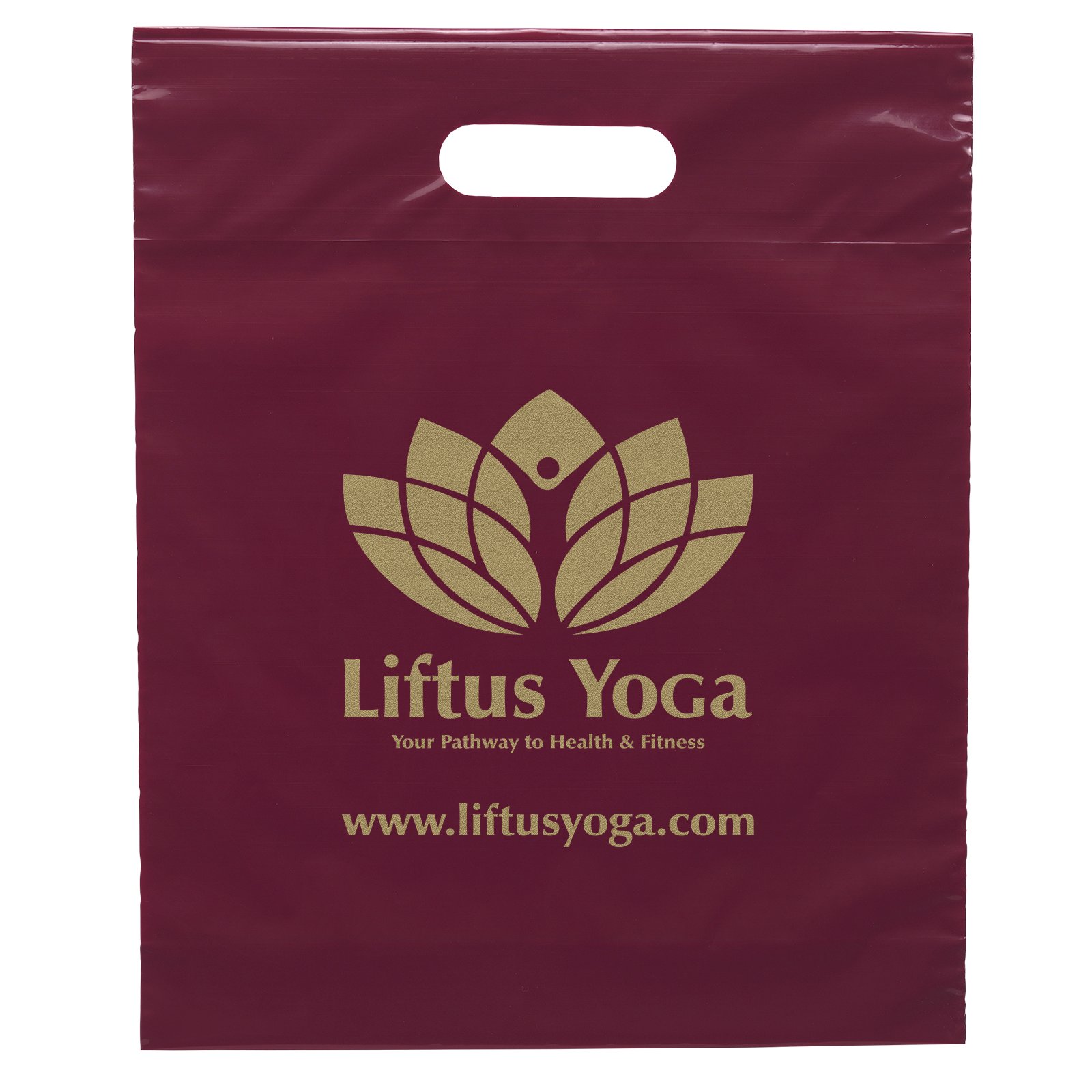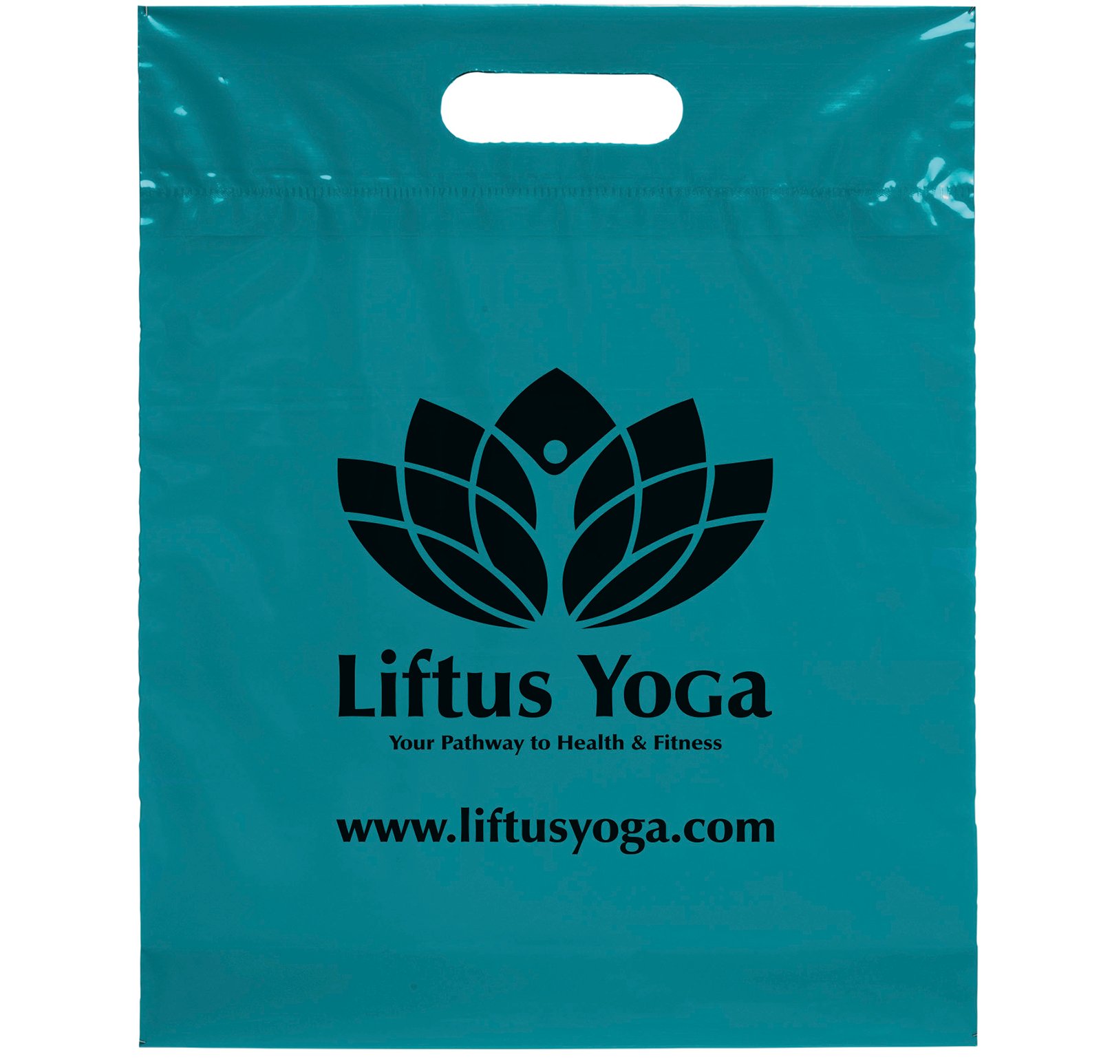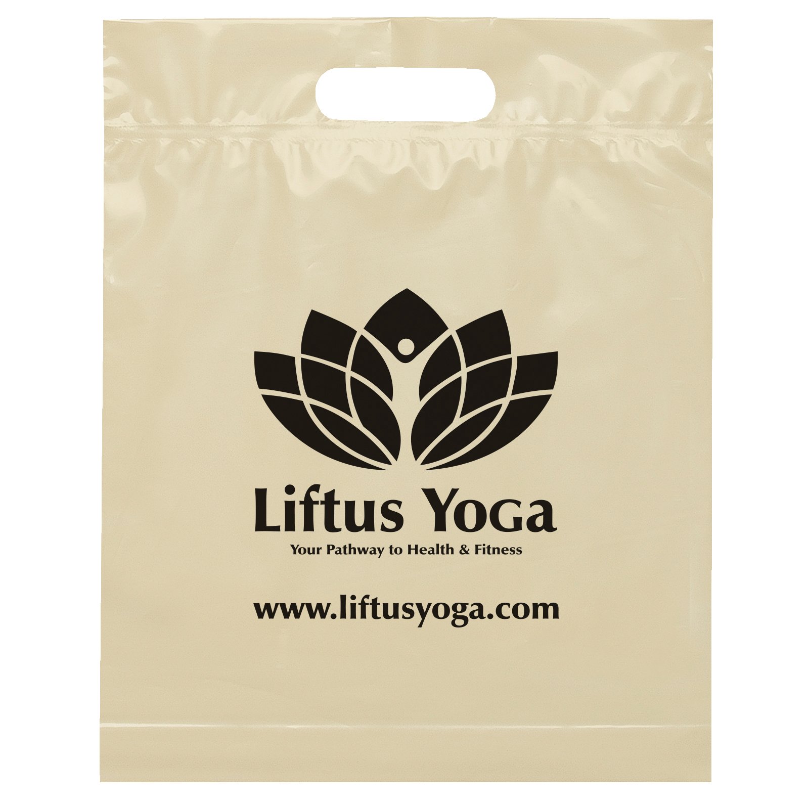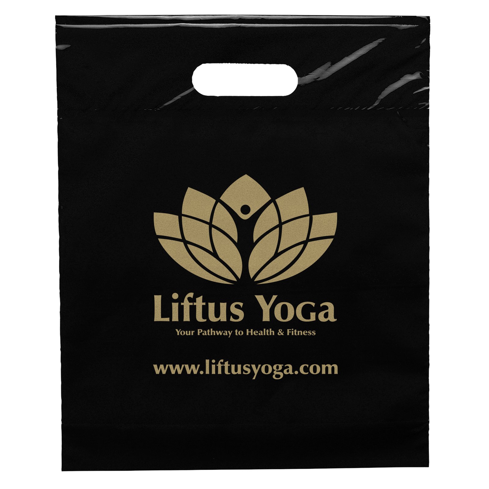 This 2.5 mil lo-density plastic bag features fold-over reinforced die cut handles and a bottom gusset. 12″ W x 3″ D x 15″ H