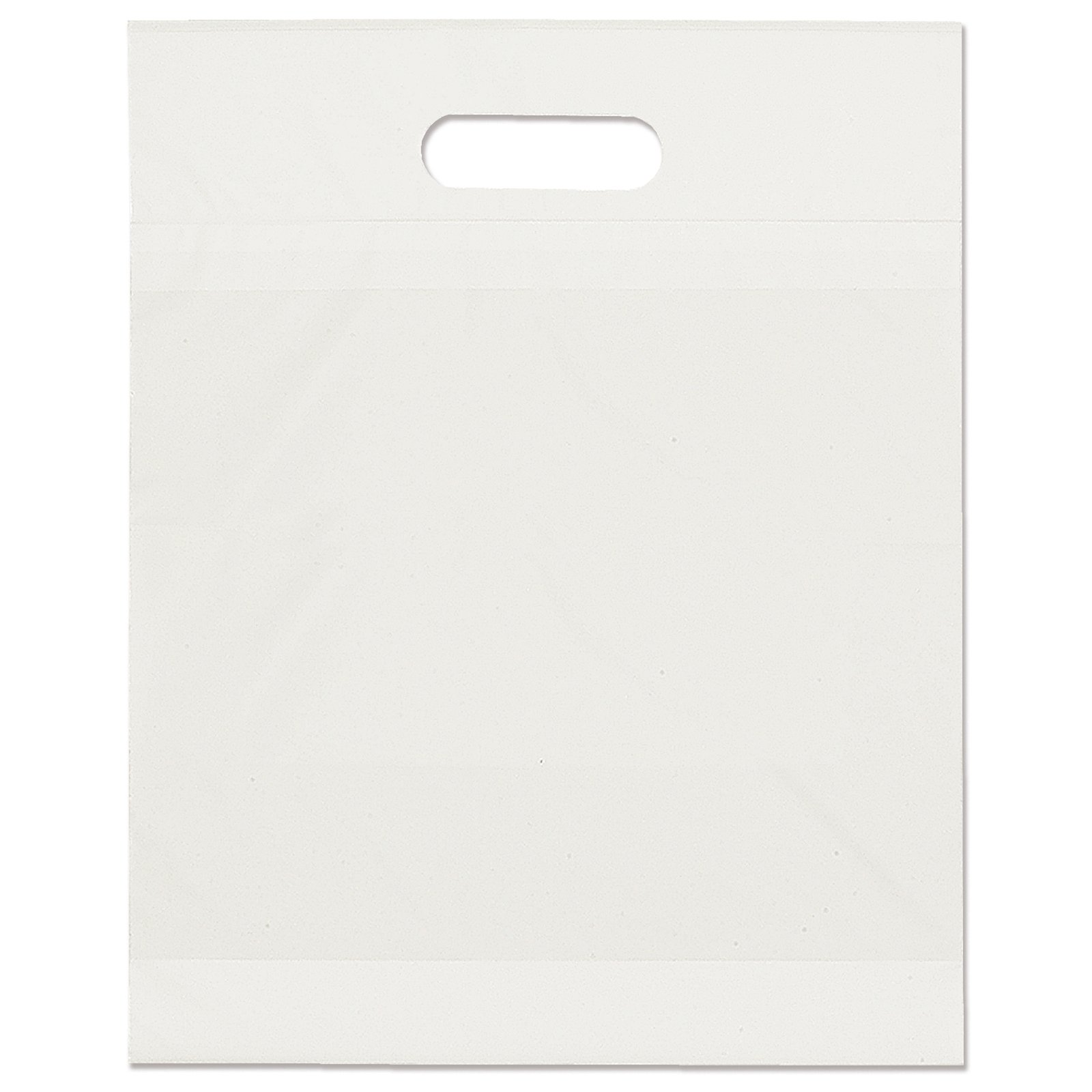 This eco-friendly 2.5 mil plastic bag contains up to 40% post-industrial recycled content and up to 20% nonpetroleum-based calcium filler. The bag features fold-over, reinforced die cut handles. One sided imprint only. 12″ W x 3″ D x 15″ H