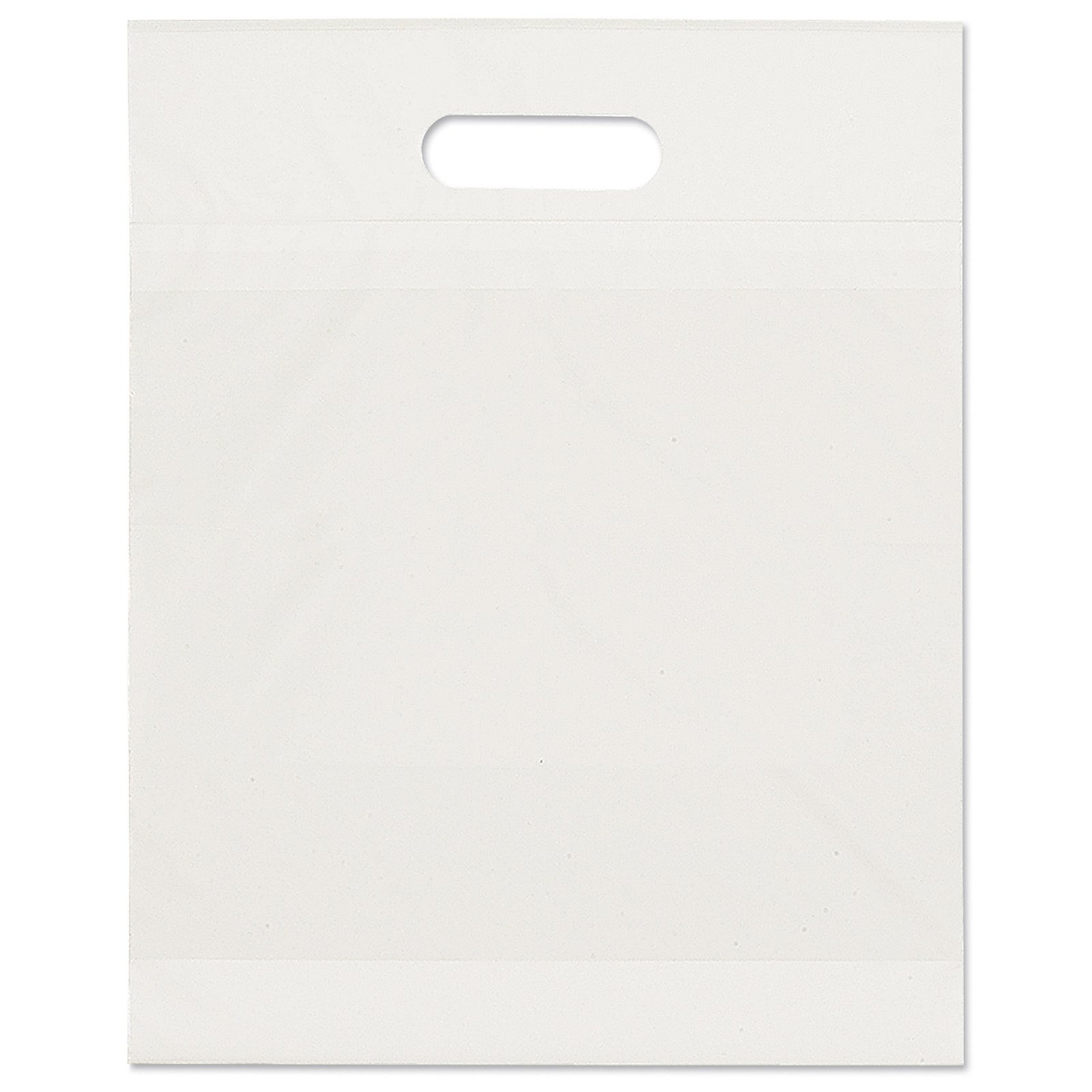 This eco-friendly 2.5 mil plastic bag contains up to 40% post-industrial recycled content and up to 20% nonpetroleum-based calcium filler. The bag features fold-over, reinforced die cut handles. 12″ W x 3″ D x 15″ H