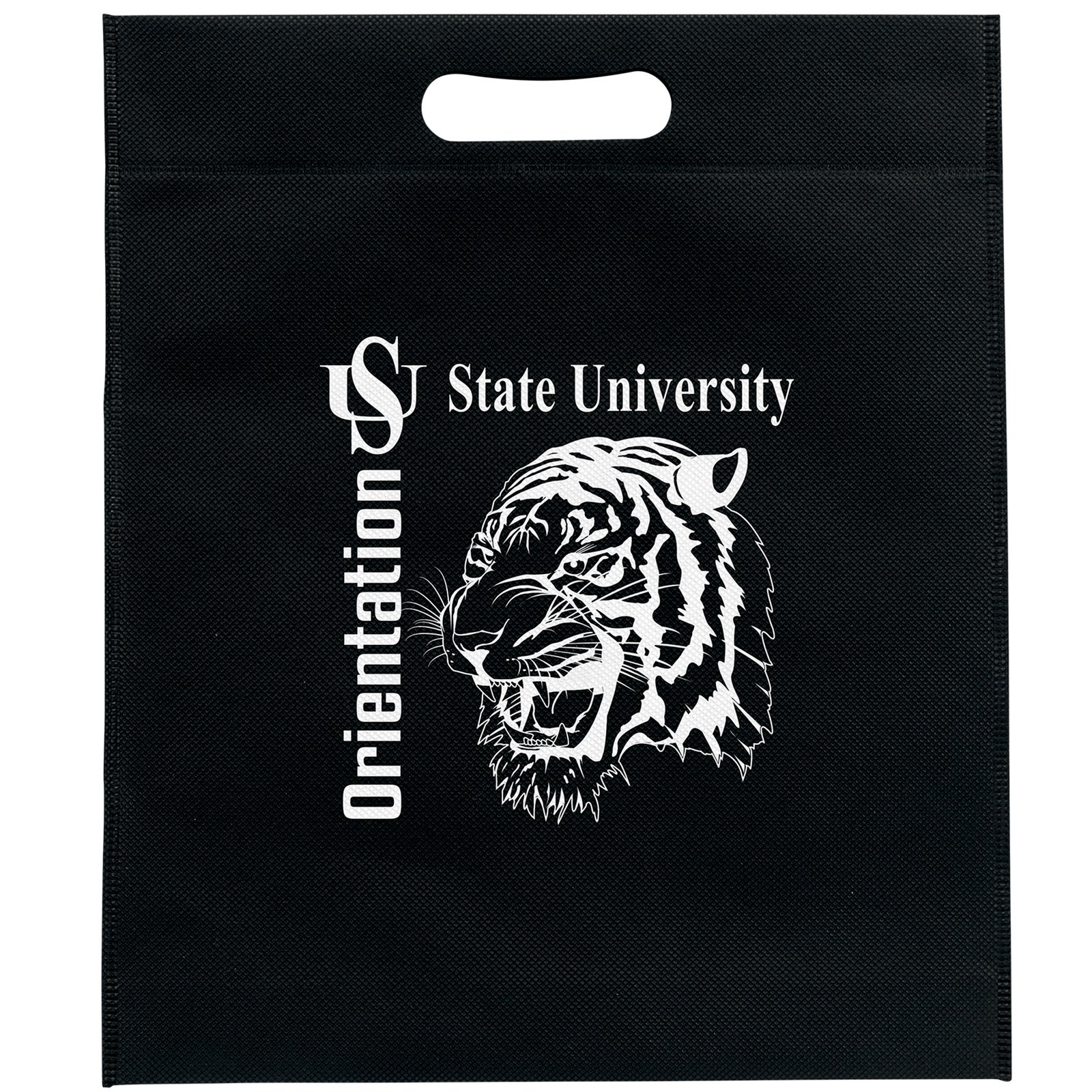 This Reusable bag is made with Premium non-woven material and feature die cut handles. 13″ W x 3″ D x 15″ H