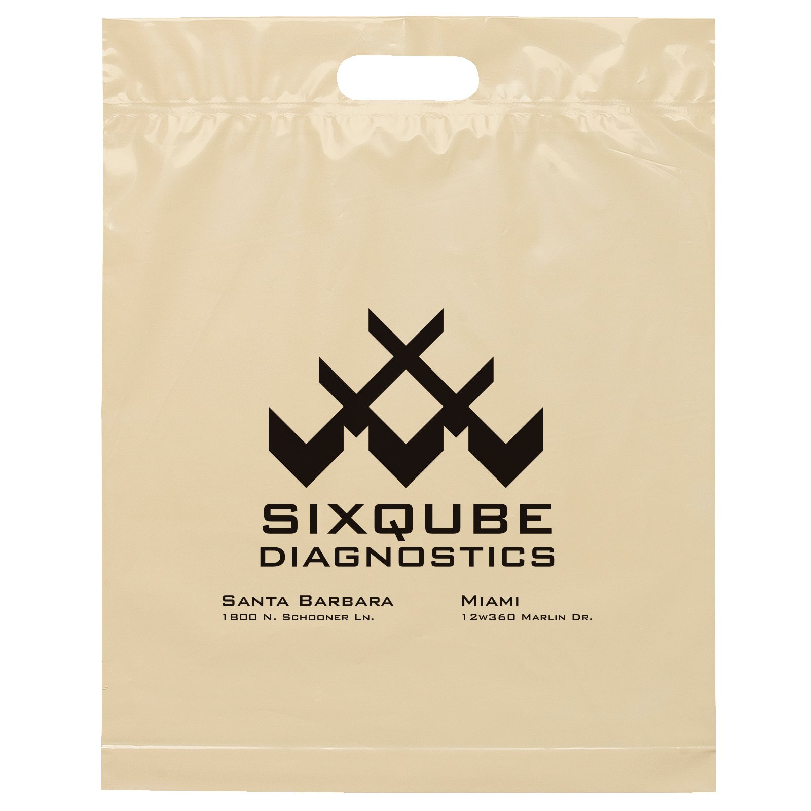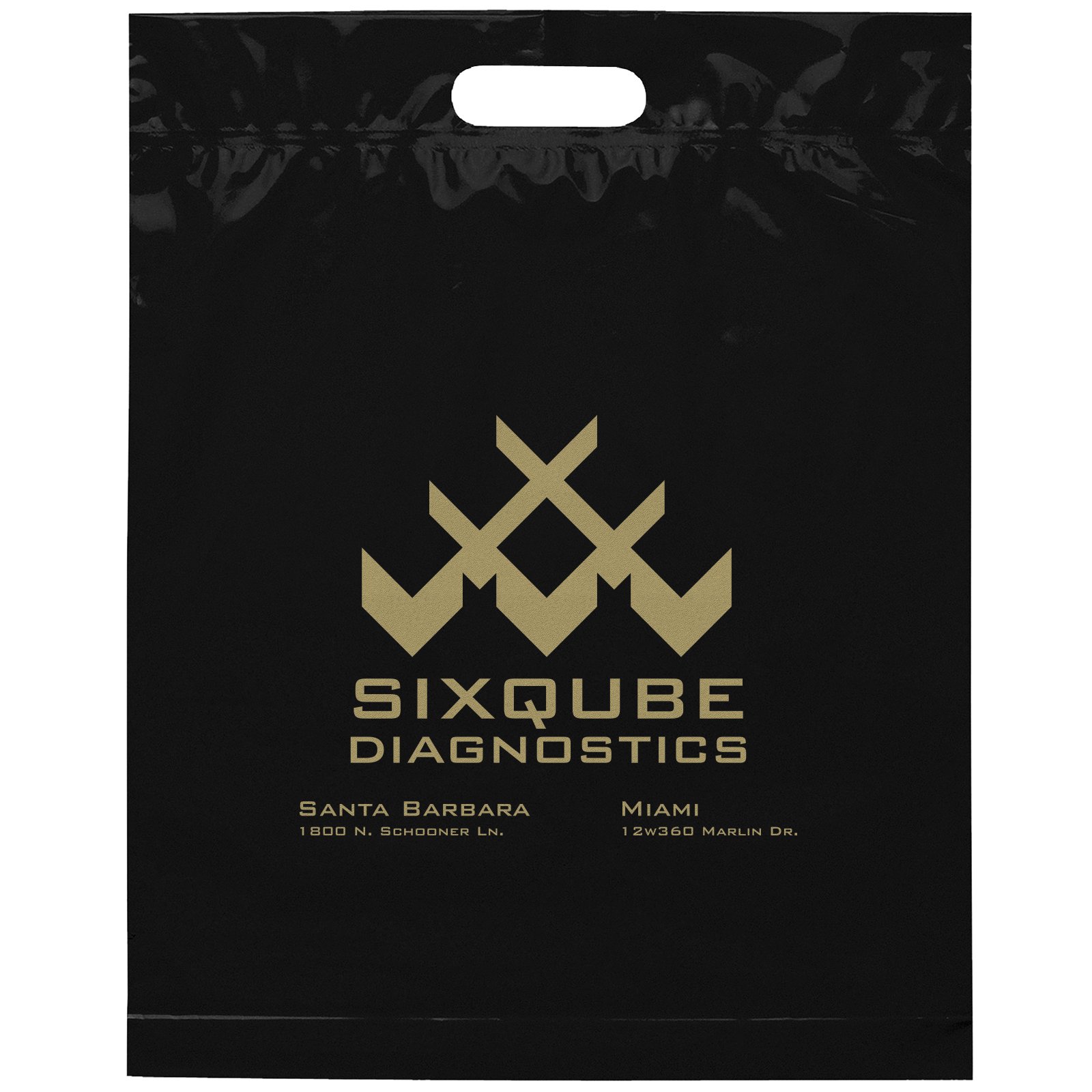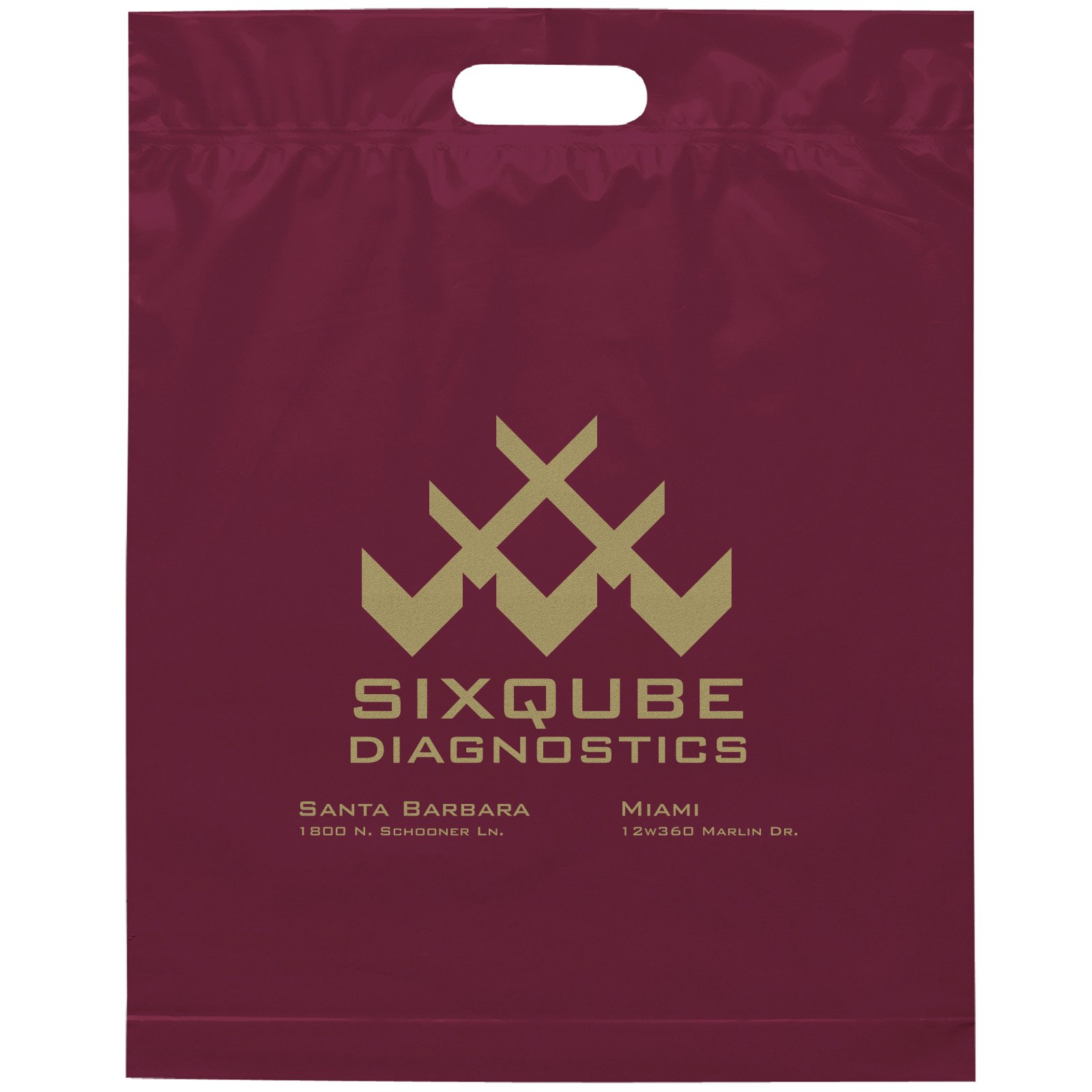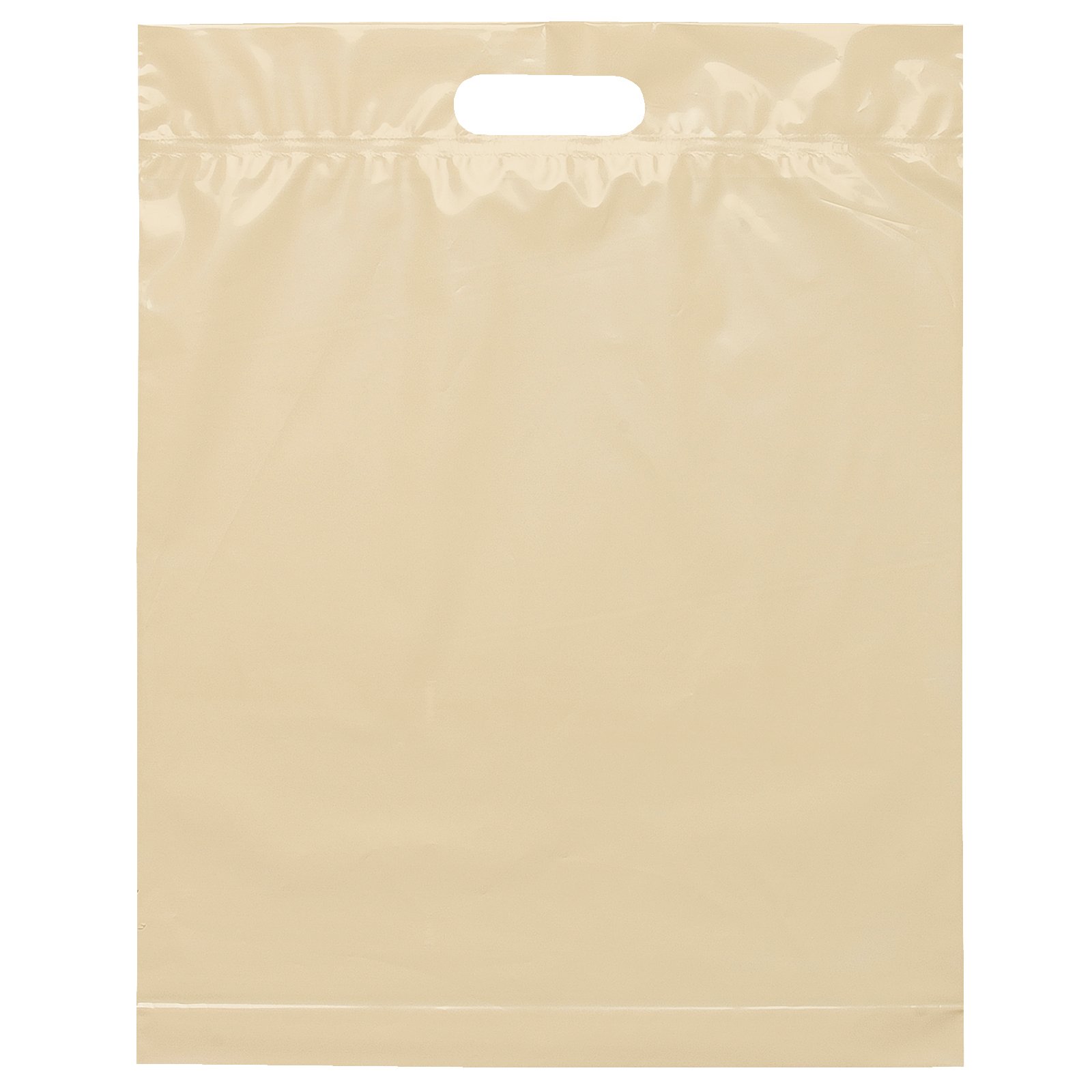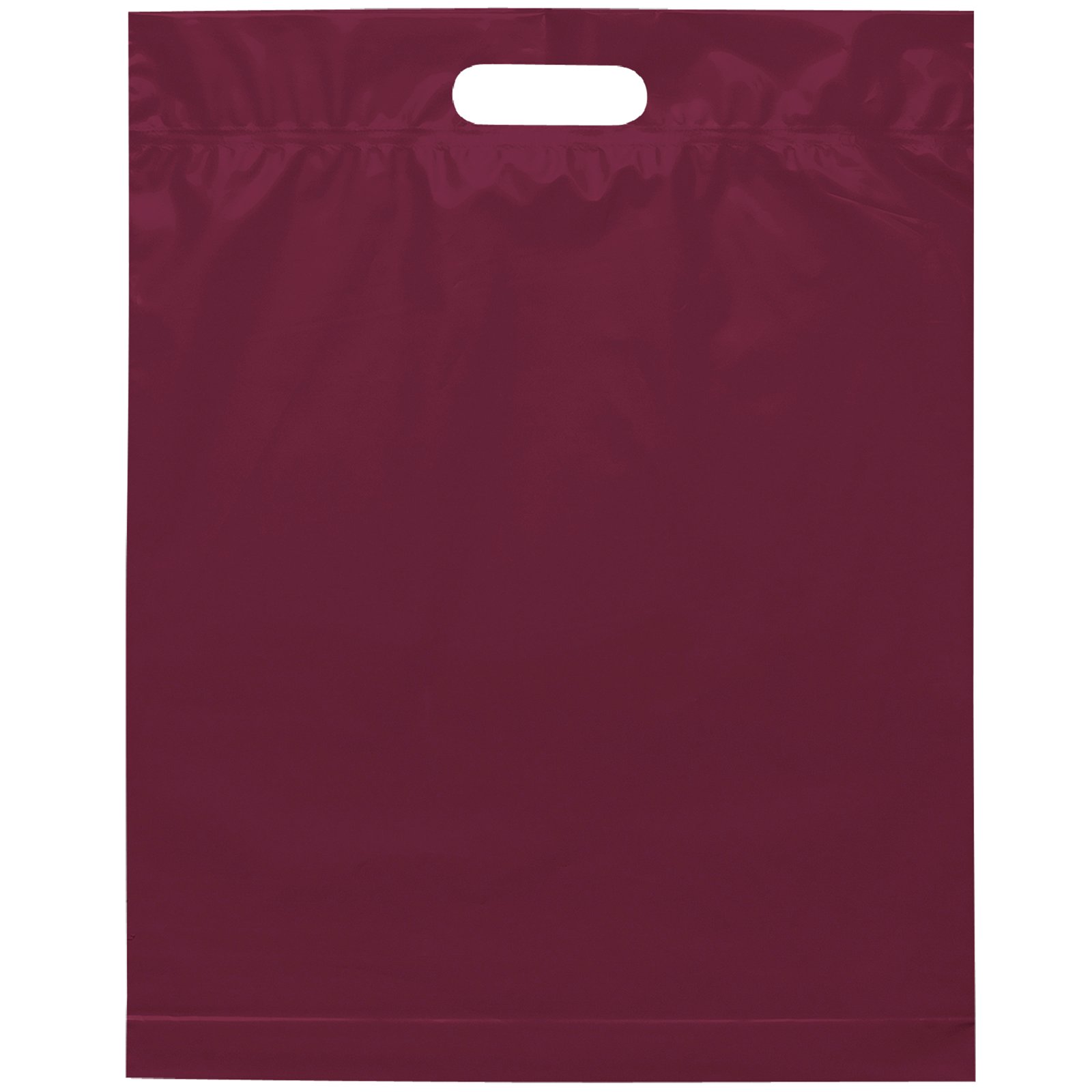 This 2.5 mil lo-density plastic bag features fold-over reinforced die cut handles and a bottom gusset. 15″ W x 3″ D x 19″ H