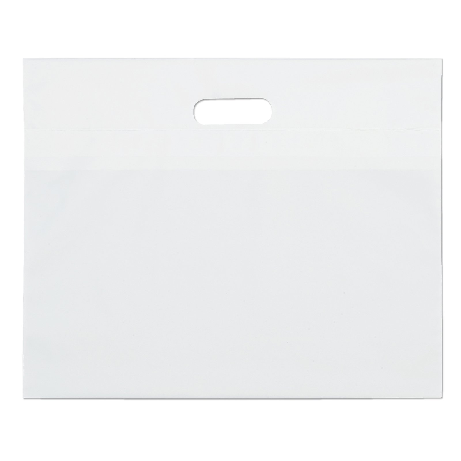 The 16W x 13H Digital Full Color Die Cut Bag is made with 2.0 mil plastic and non-reinforced die cut handles. The Digital Full Color print process showcases artwork with crisp colors, a generous imprint area, and exceptional clarity for small fonts, fine lines, and details. 16″ W x 13″ H