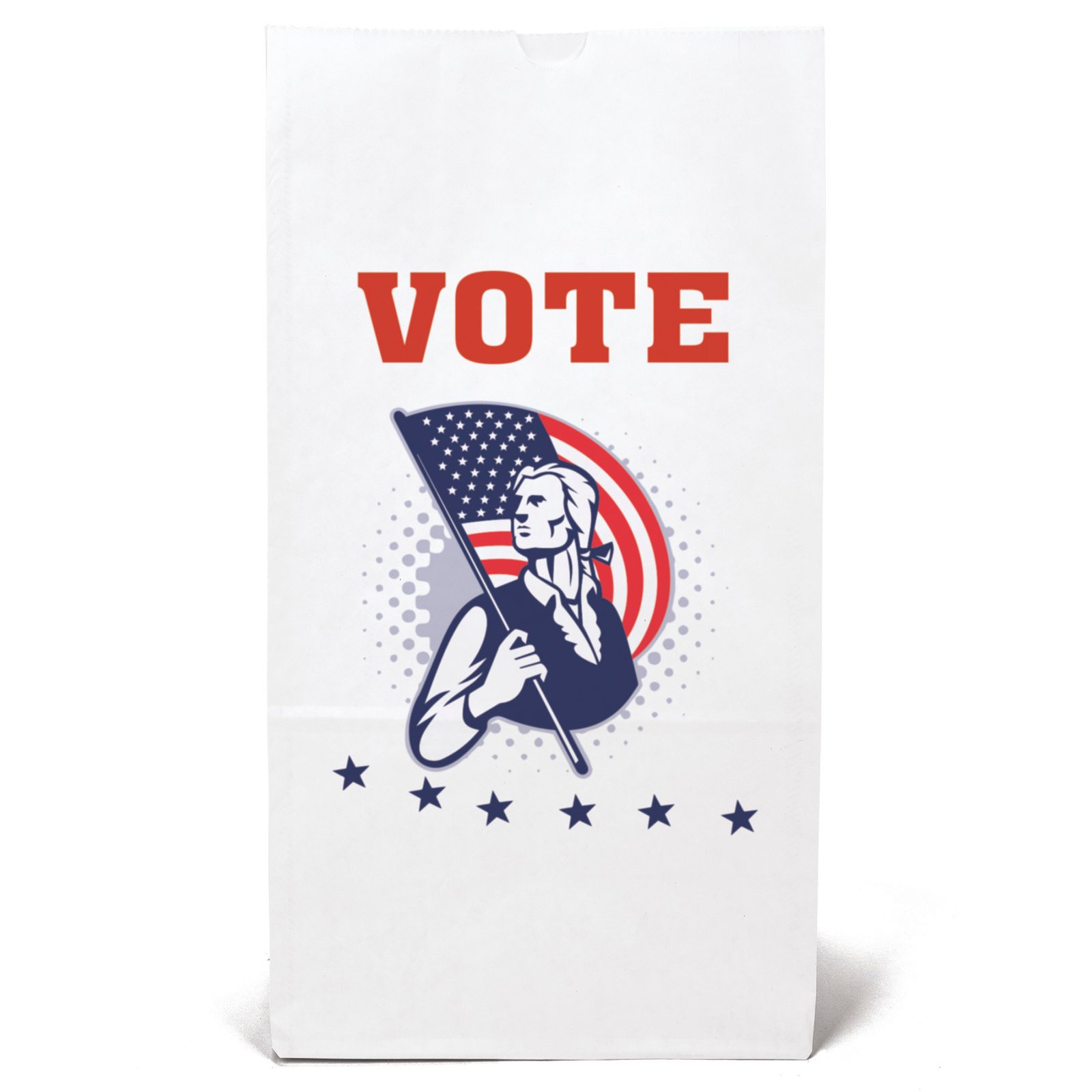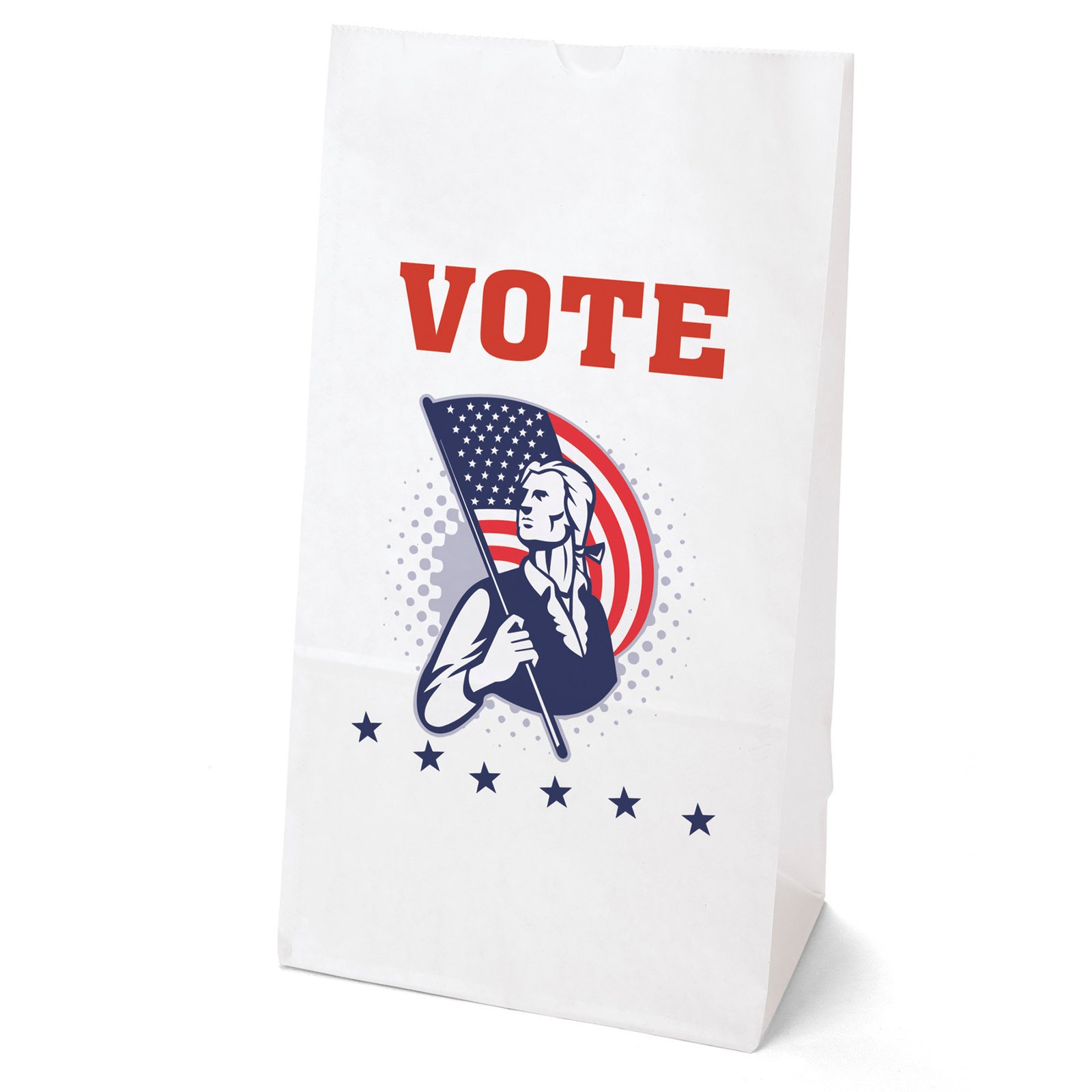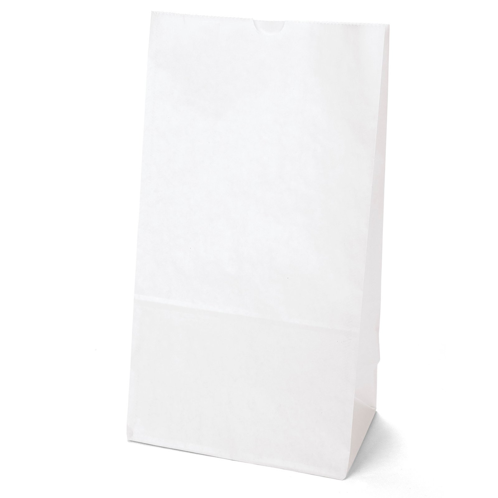 Durable white paper S.O.S. Bag features a side gusset and a serrated cut top. 8 1/4″ W x 5 1/4″ D x 16 1/8″ H