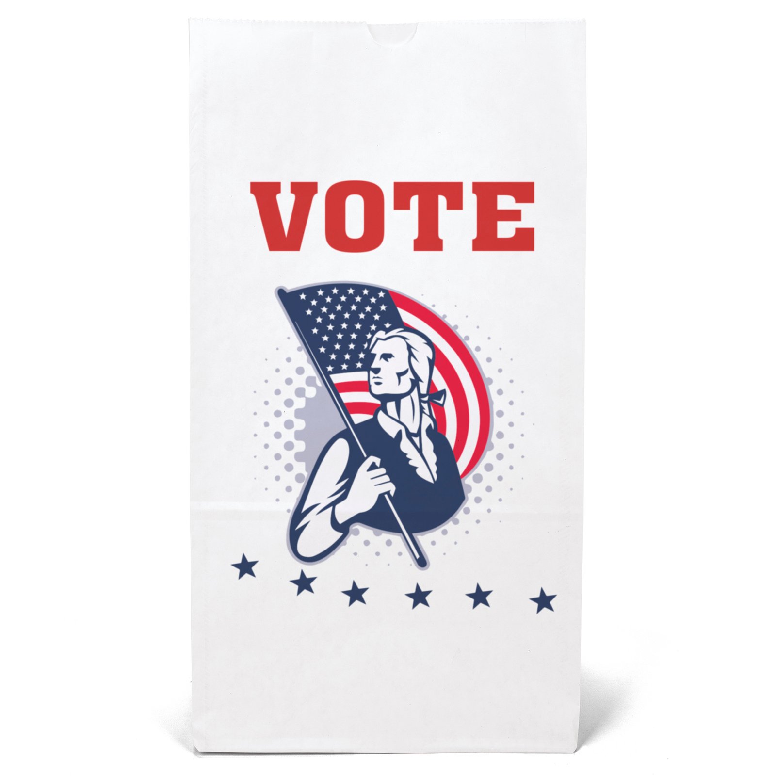 Durable brown kraft paper S.O.S. Bag features a side gusset and a serrated cut top. Brown kraft paper is made from 100% recycled paper with a minimum of 95% post-consumer content. 8 1/4″ W x 5 1/4″ D x 16 1/8″ H