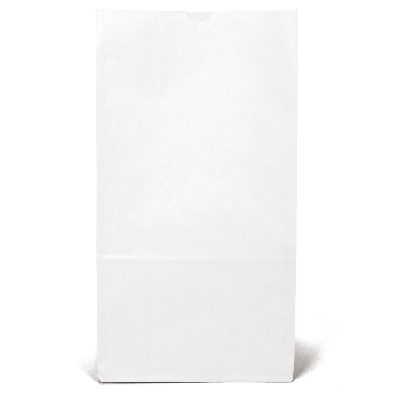 Durable white paper S.O.S. Bag features a side gusset and a serrated cut top. 8 1/4″ W x 5 1/4″ D x 16 1/8″ H