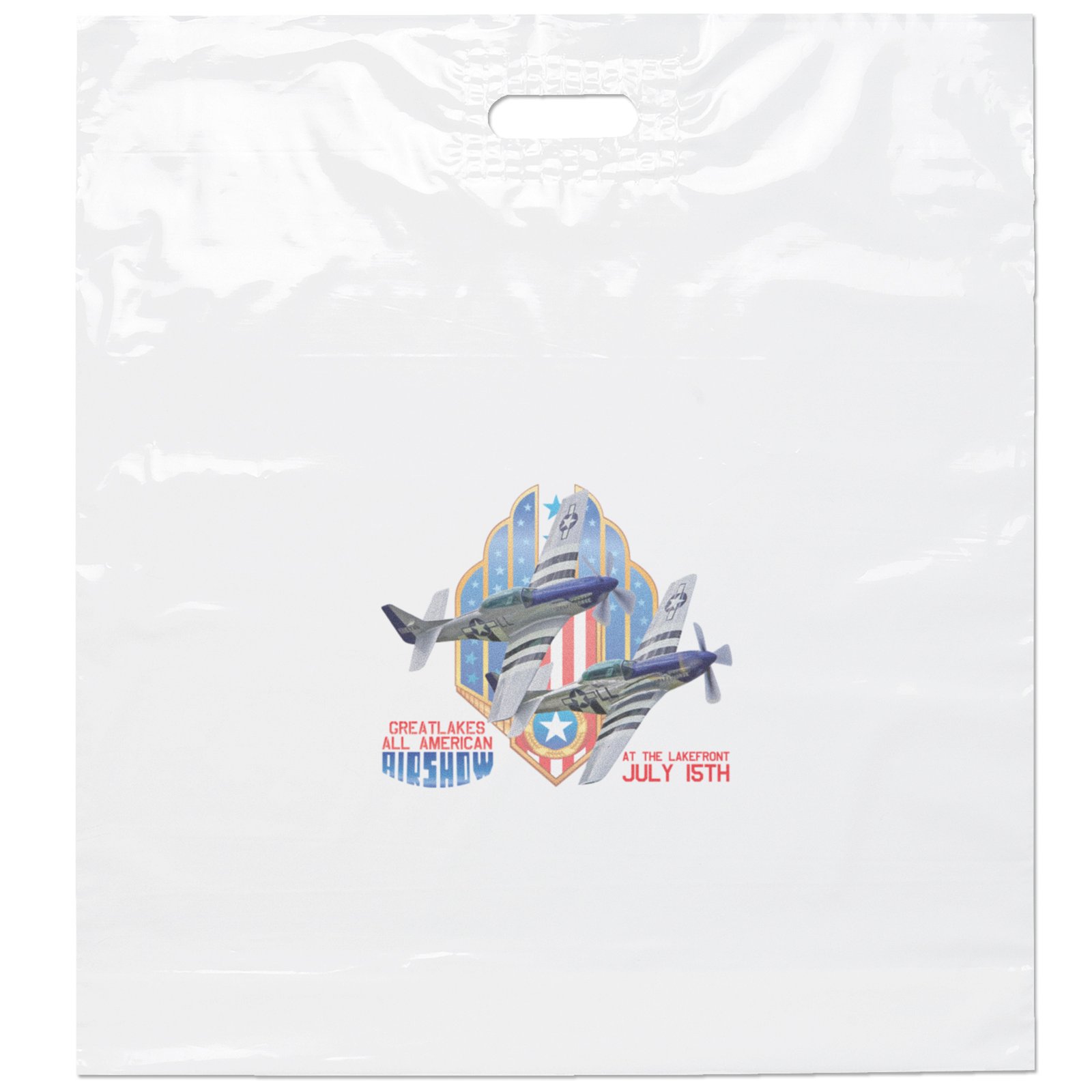 This lo-density 3.0 mil plastic bag features patch-reinforced die cut handles and a bottom gusset. 22″ W x 24′ H x 5″ D