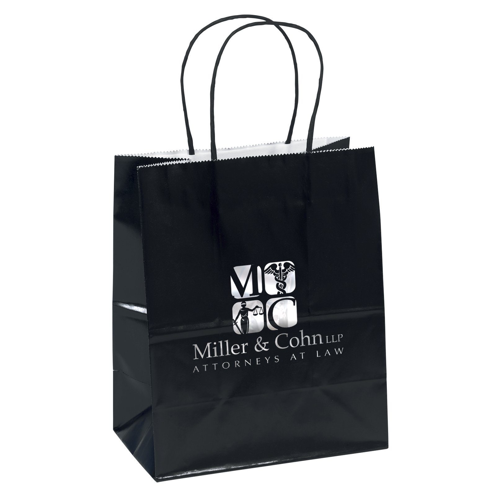 The Amanda™ Gloss Shopper features a glossy paper finish and twisted kraft paper handles. 7 3/4″ W x 4 3/4″ D x 9 3/4″ H