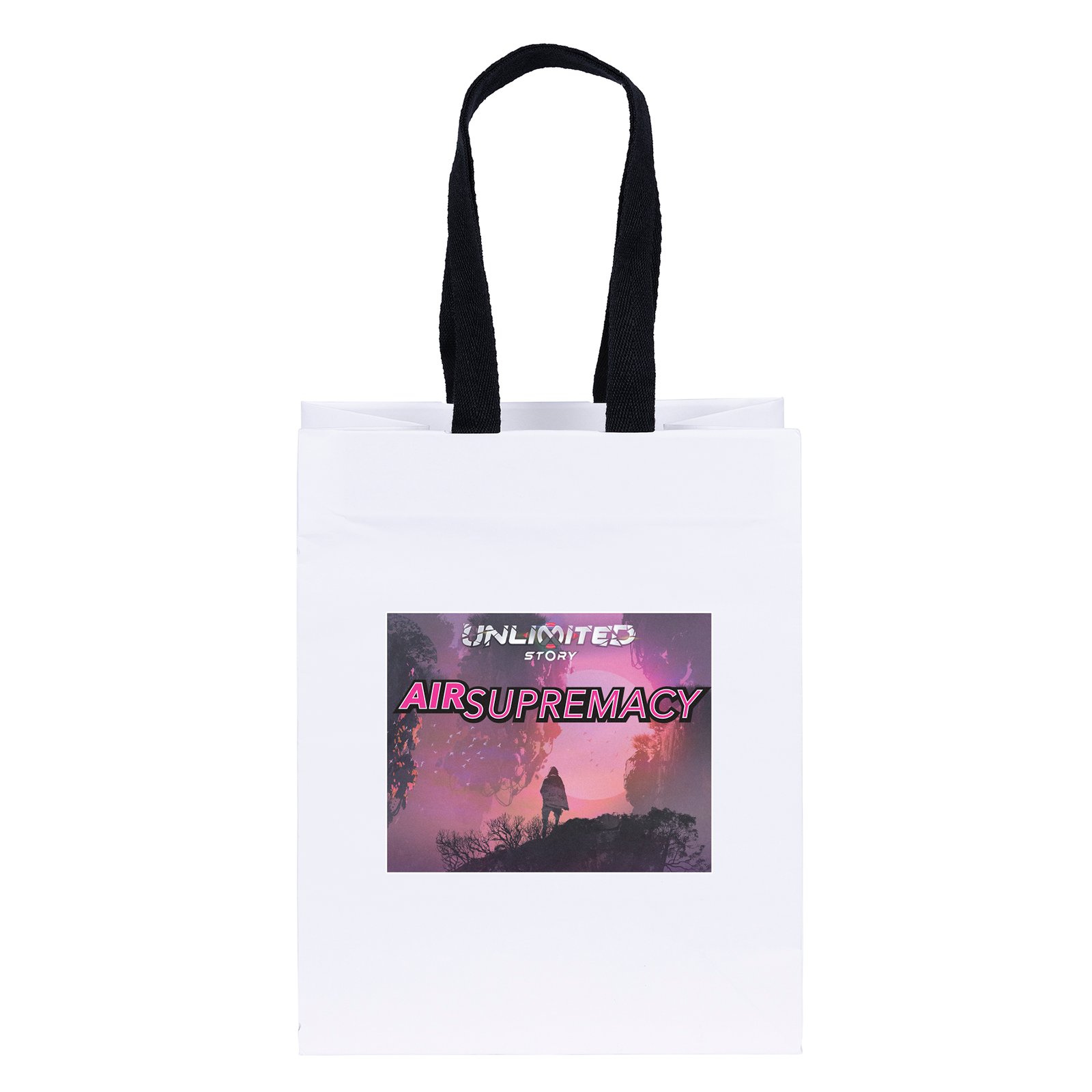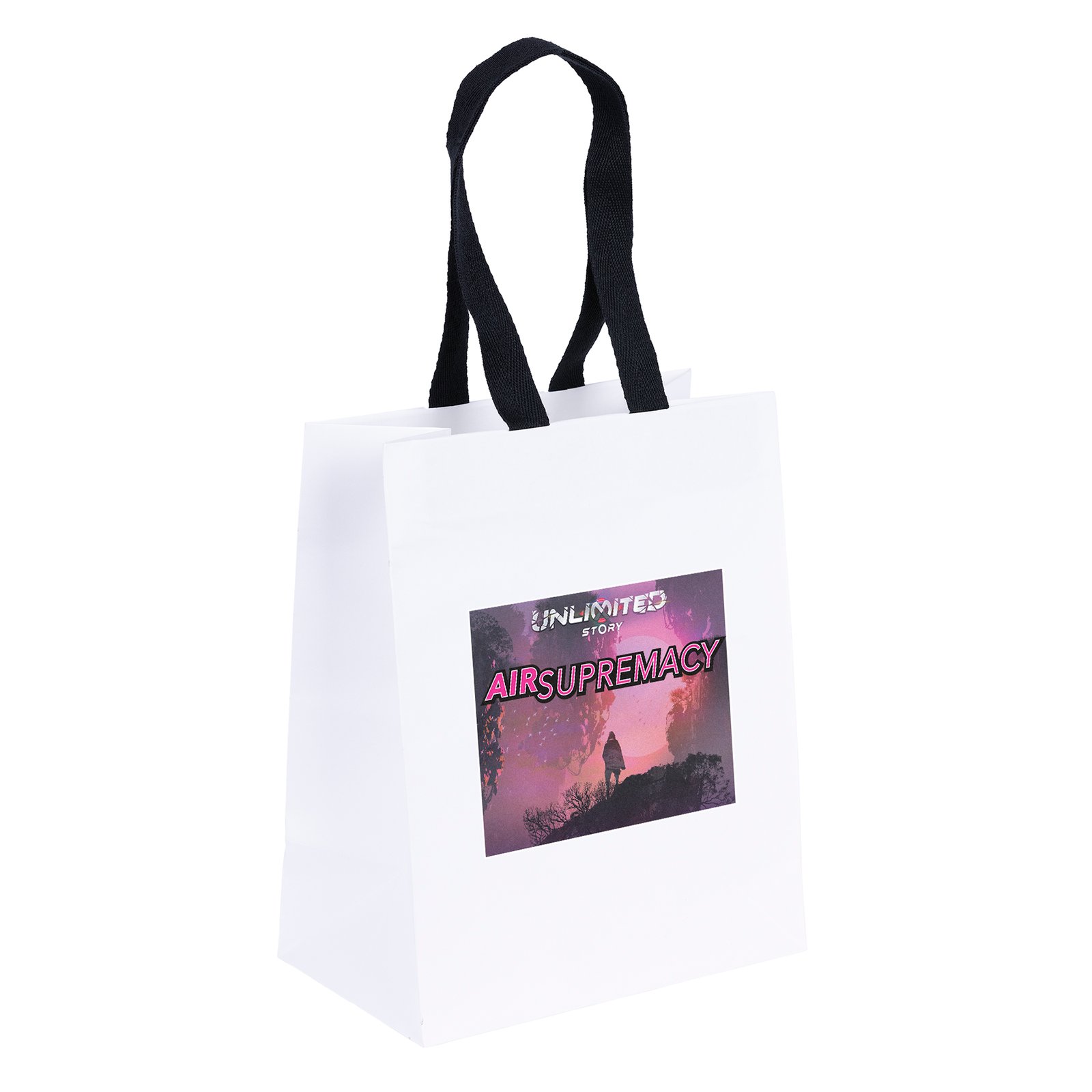 The Ash Woven-Handle White Eurotote is made with 120 GSM white paper and features distinctive black handles and a cardboard bottom insert. Handles measure 3/4″W x 12″ long. 7 3/4″ W x 4 3/4″ D x 9 3/4″ H