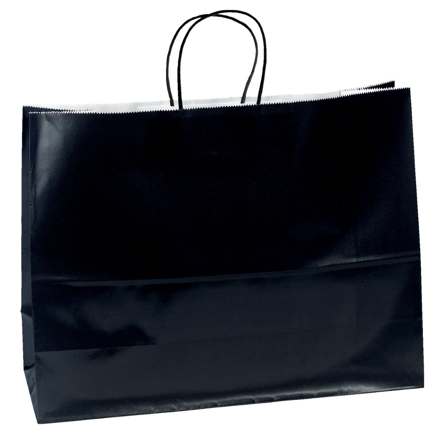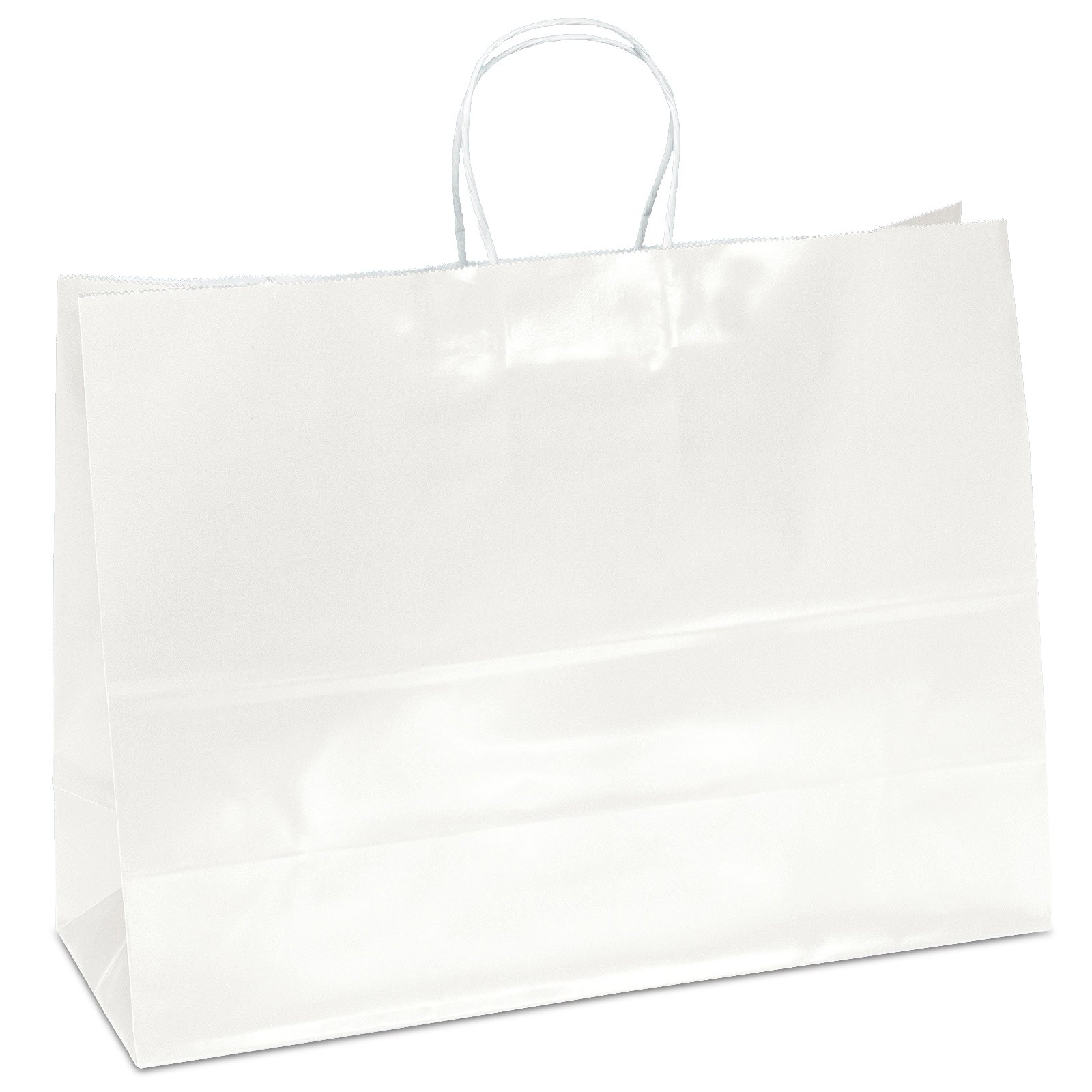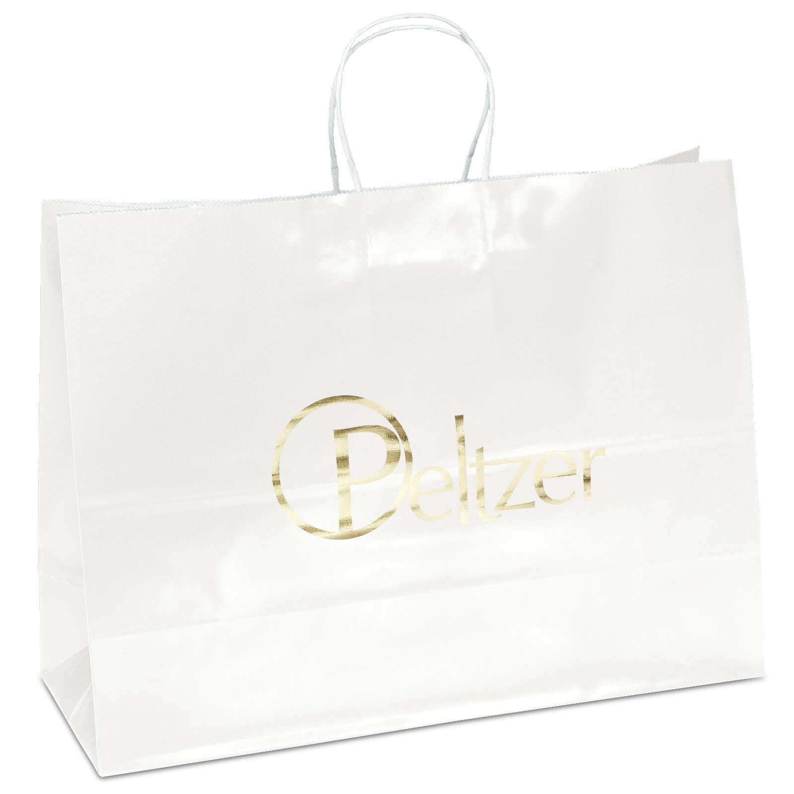 The Aubrie™ Gloss Shopper features a glossy paper finish and twisted kraft paper handles. 16″ W x 6″ D x 12″ H