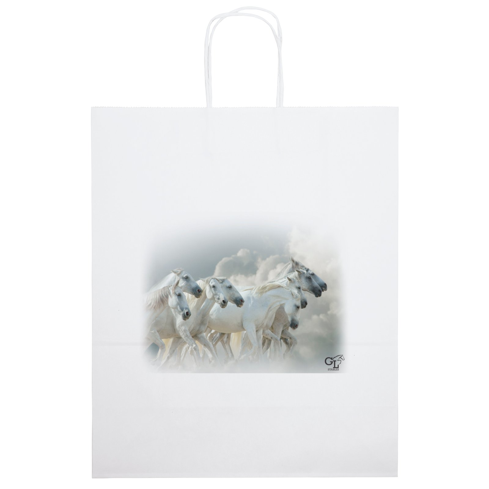 The Citation White Shopper is made with white kraft paper and features twisted paper handles and a serrated cut top. 13″ W x 6″ D x 15″ H