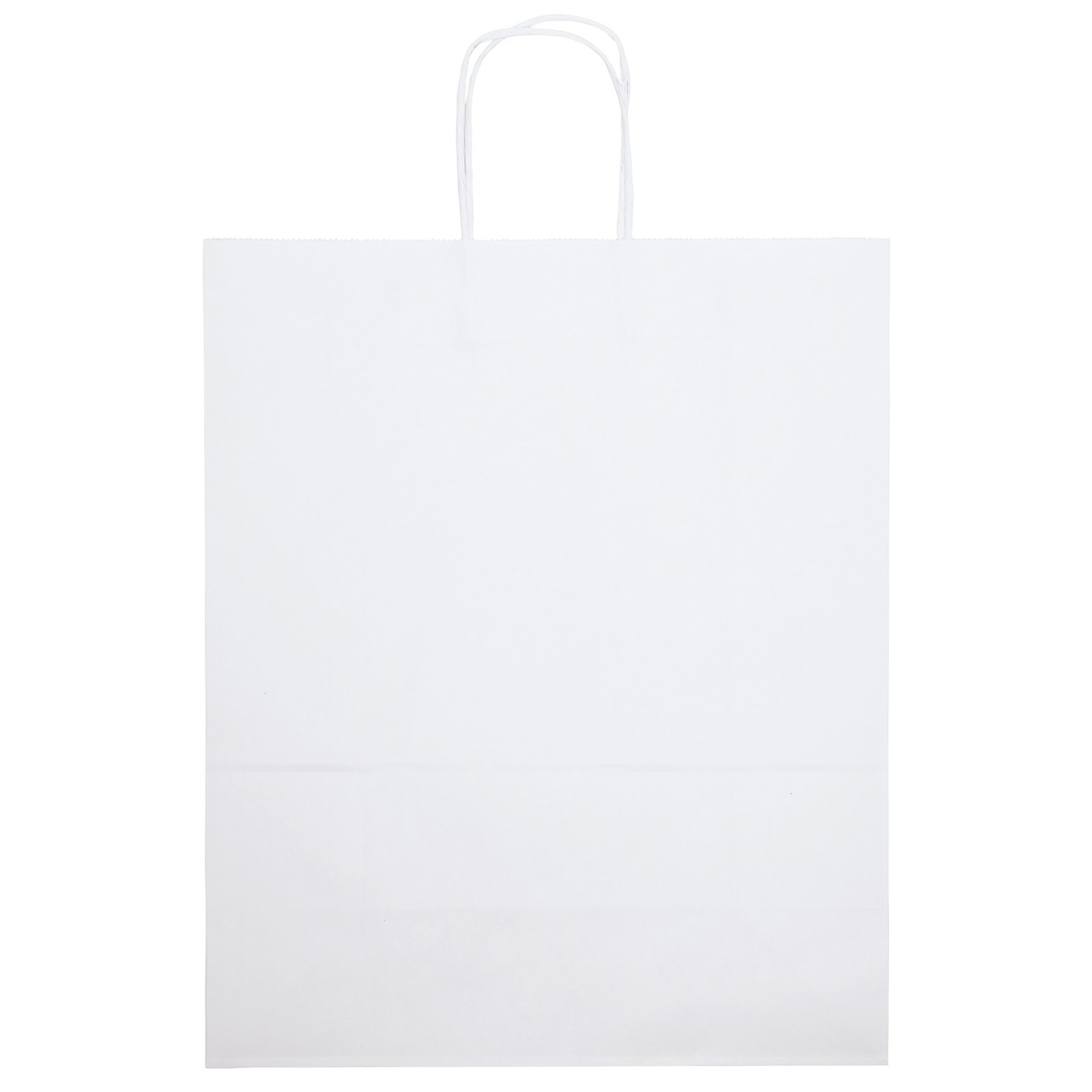 The Citation White Shopper is made with white kraft paper and features twisted paper handles and a serrated cut top. 13″ W x 6″ D x 15″ H
