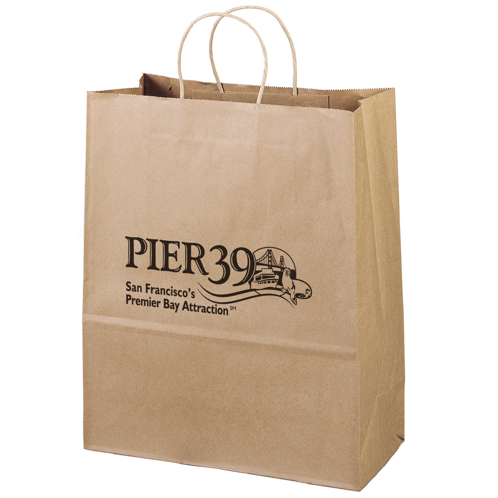 The Eco Citation is made from brown kraft paper and has twisted paper handles and a serrated top. The eco-friendly bag is made from 100% recycled paper with a minimum of 60% recycled post-consumer content. 13″ W x 6″ D x 15″ H