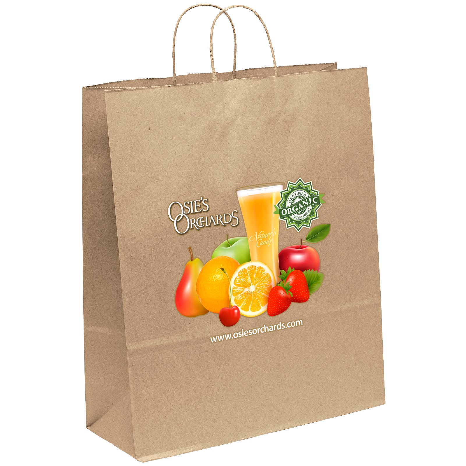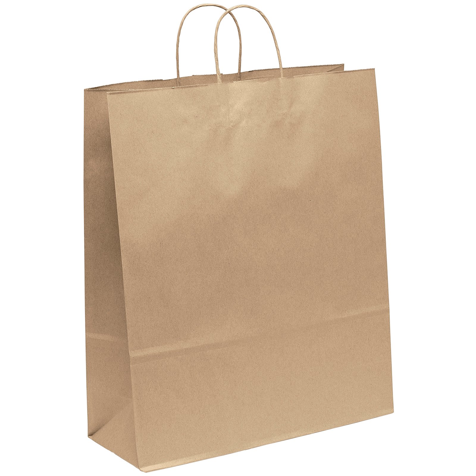 The Eco Stephanie is made from brown kraft paper and has twisted paper handles and a serrated top. The eco-friendly bag is made from 100% recycled paper with a minimum of 60% recycled post-consumer content. 16″ W x 6″ D x 19″ H