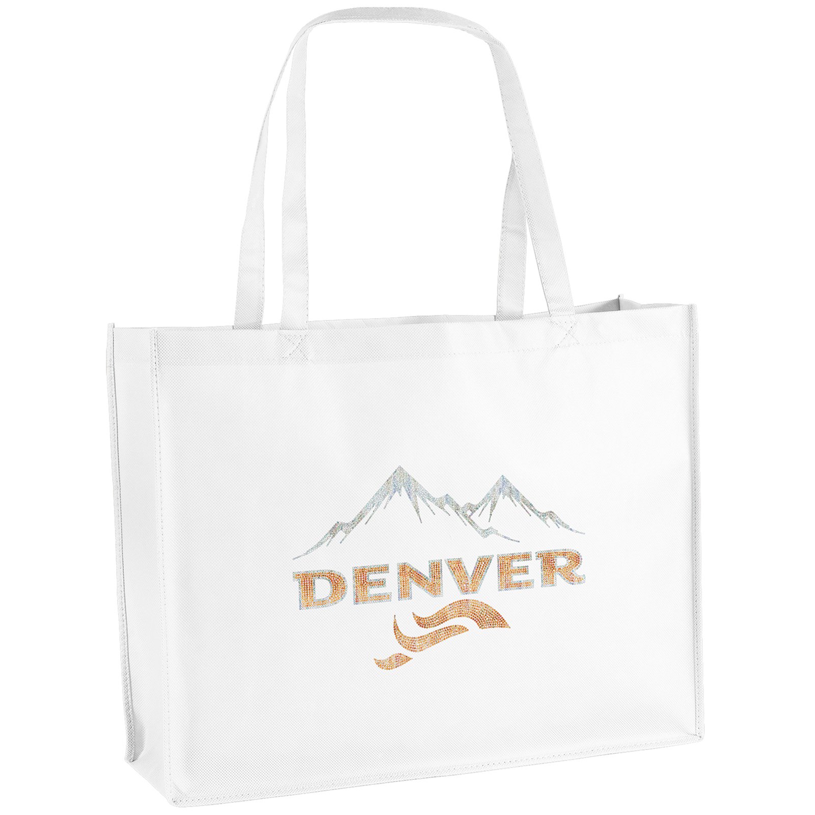 This versatile George Celebration Tote features durable 80 GSM premium non-woven material, strong stitched seams, reinforced sewn handles, and side and bottom gussets. An optional plastic bottom insert is available for purchase. Handles measure 1″W x 28 long. 20″ W x 6″ D x 16″ H