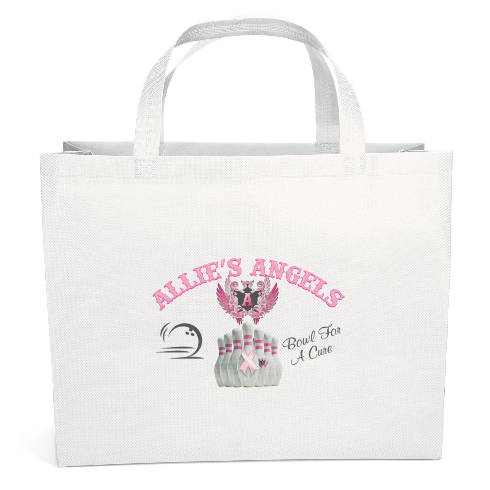 The affordable Giant Saver™ Budget Tote is made with 90 GSM non-woven material and features heat-sealed handles. An optional plastic bottom insert is available for purchase. Handles measure 1 1/2″W x 21″ long. 21″ W x 8 1/2″ D x 17″ H