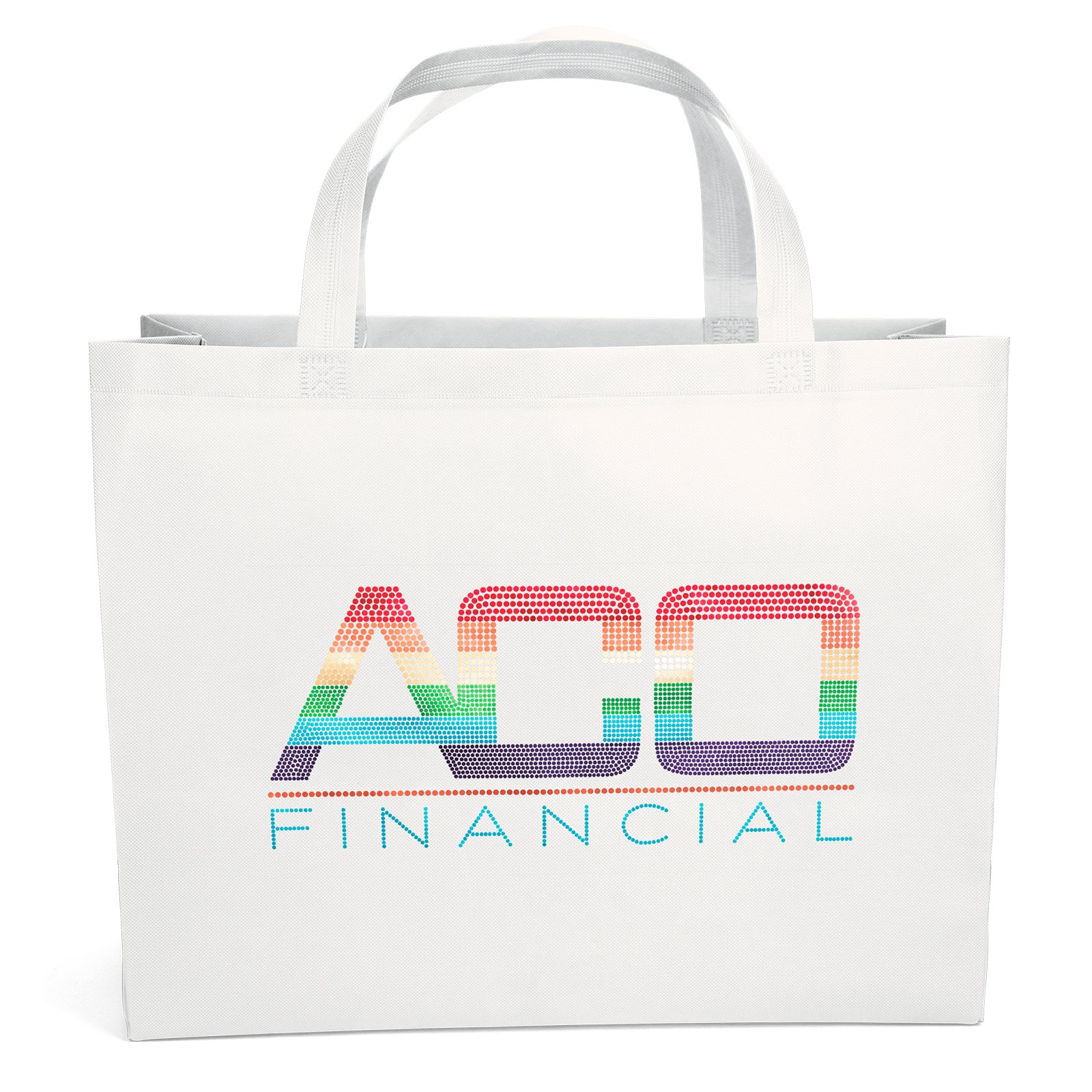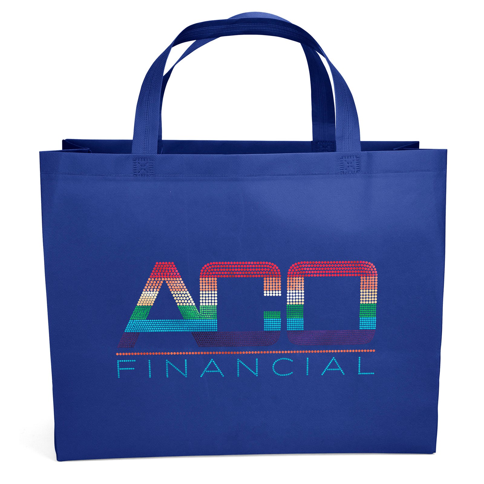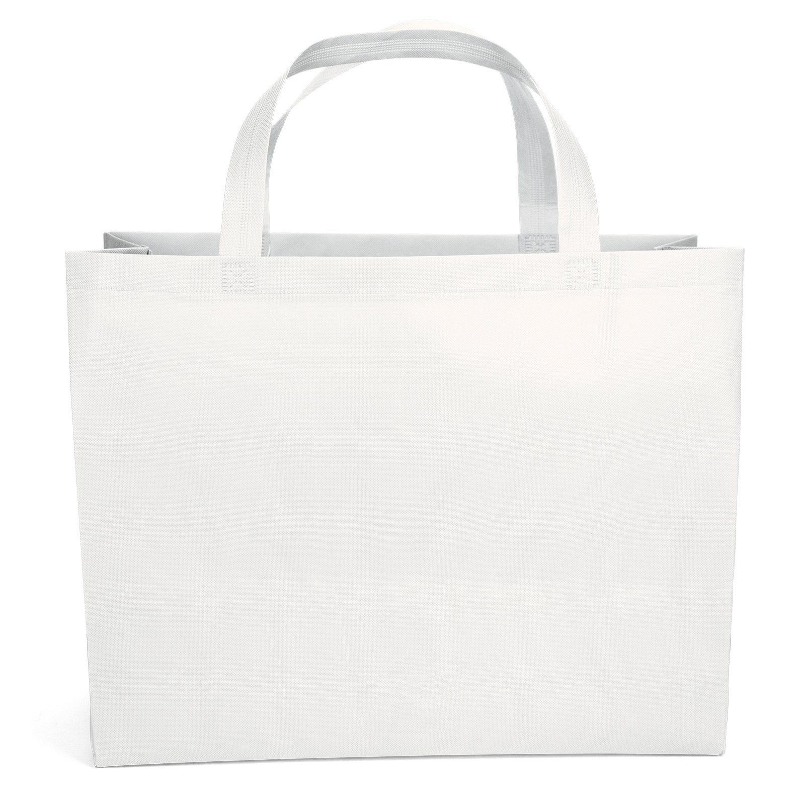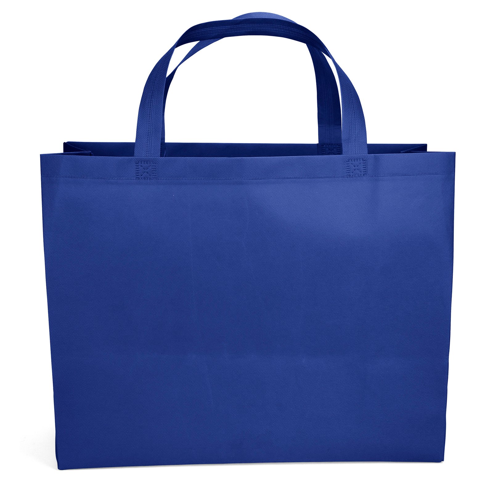 The affordable Giant Saver™ Budget Tote is made with 90 GSM non-woven material and features heat-sealed handles. An optional plastic bottom insert is available for purchase. Handles measure 1 1/2″W x 21″ long. 21″ W x 8 1/2″ D x 17″ H