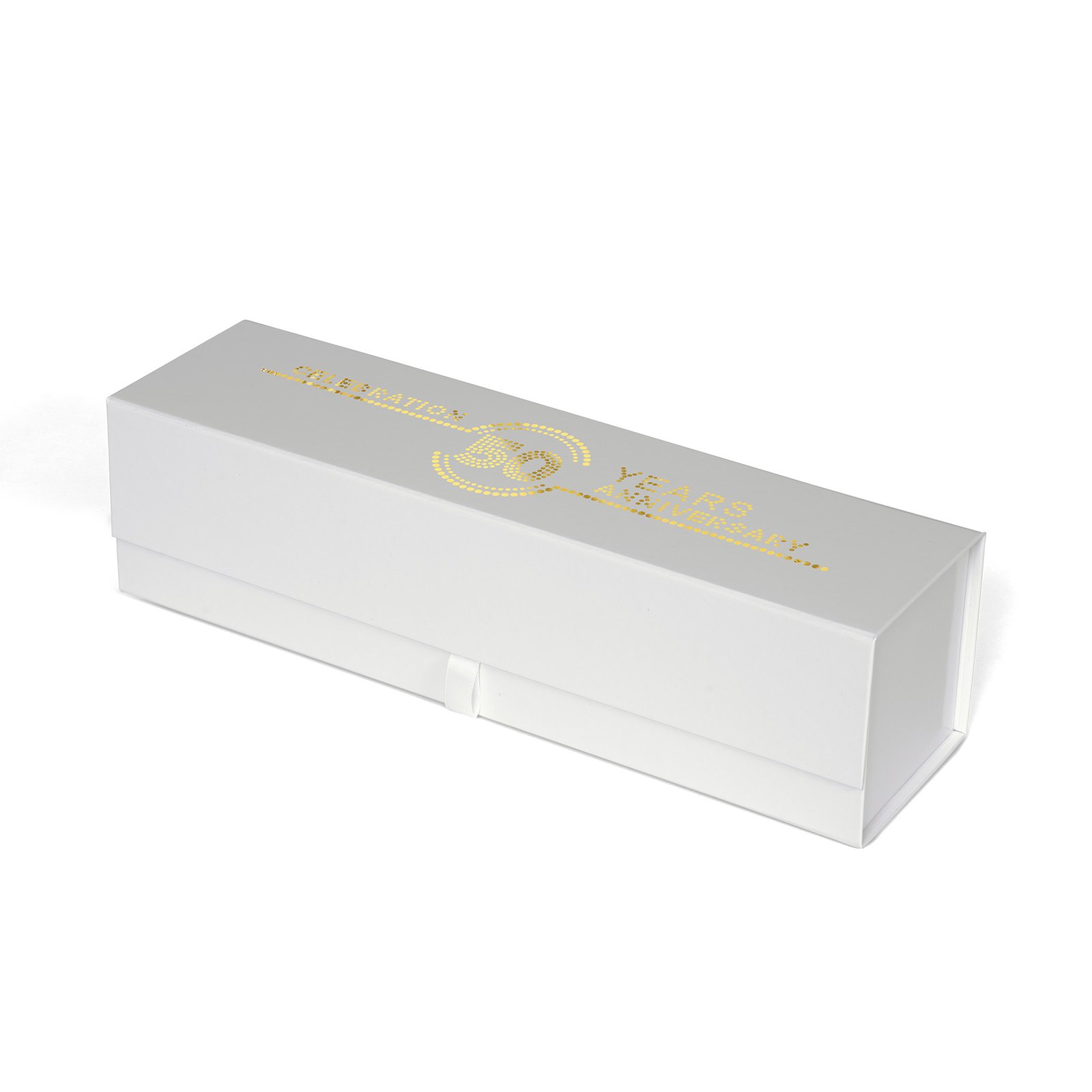 This decorative box collection offers an elegant way to package retail products, high-end gifts, kits, and more. The boxes are made with ultra-sturdy paper board and feature a magnetic flap closure that secures contents and creates a luxurious unboxing experience. The collapsible boxes fold flat for shipping and storage. Choose from four box styles with Foil Print or Sparkle imprint options on the top lid. Features a white ribbon pull-tab to open the magnetic closure. 13 1/2″ W x 3 1/2″ D x 3 1/2″ H