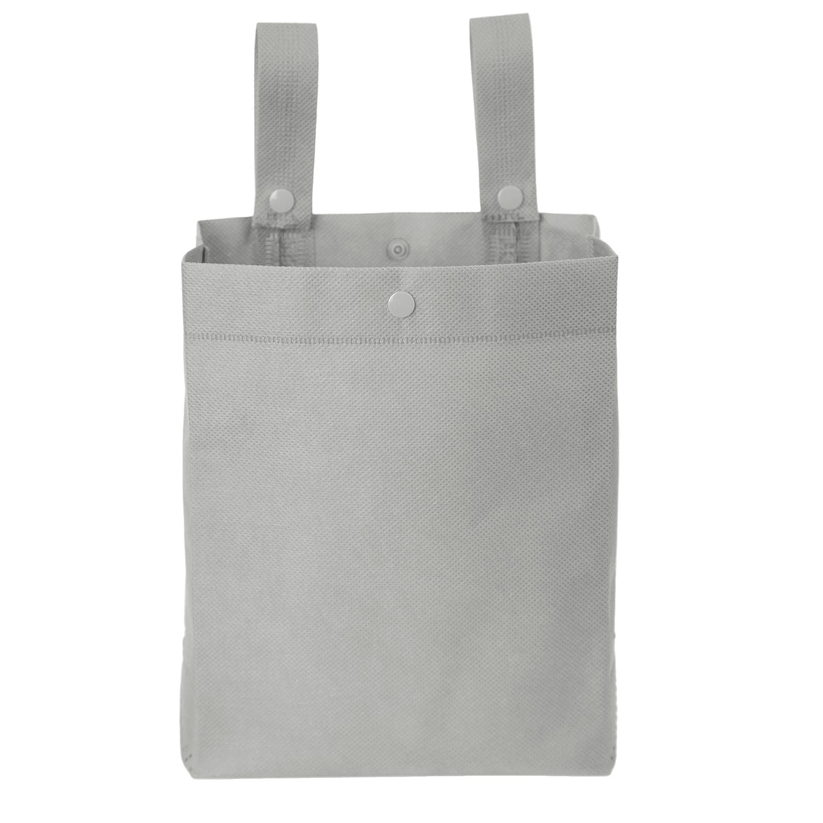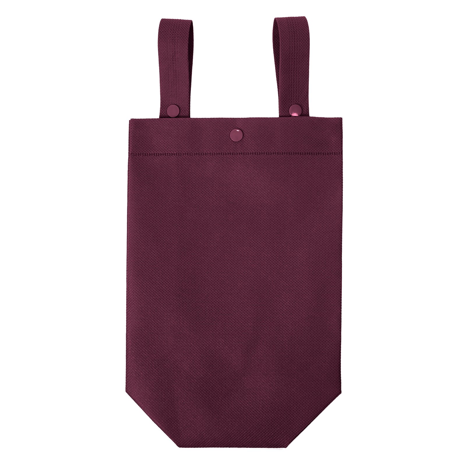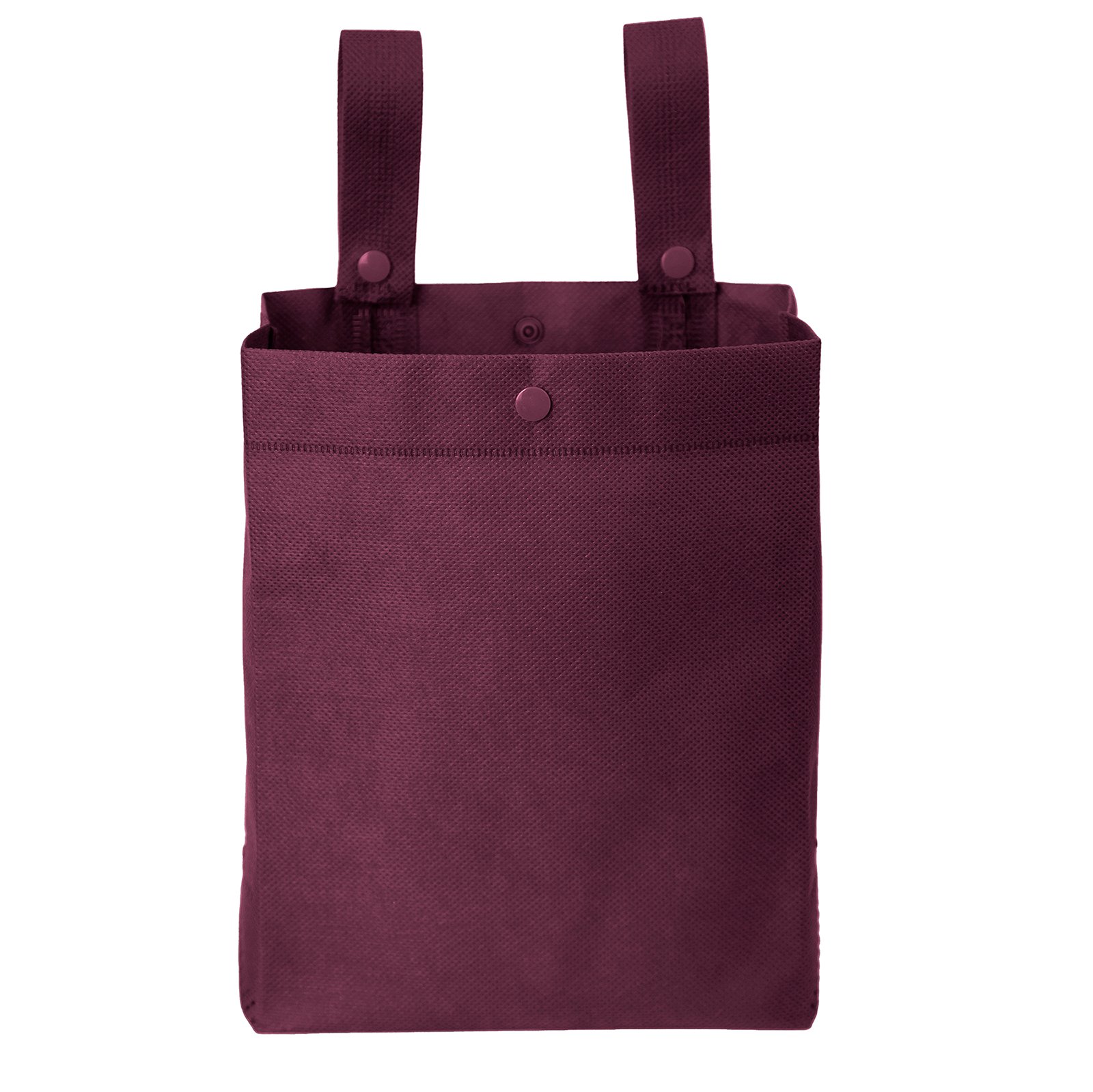 The Hang Around™ Bag’s long straps and dual snaps allow it to be attached to a chair or other item for easy access. The bag is made with premium non-woven material, fused seams and snap-top closure. An optional plastic bottom insert is available for purchase. Handles measure 1″W x 8″ long. 8″ W x 4″ D x 10″ H