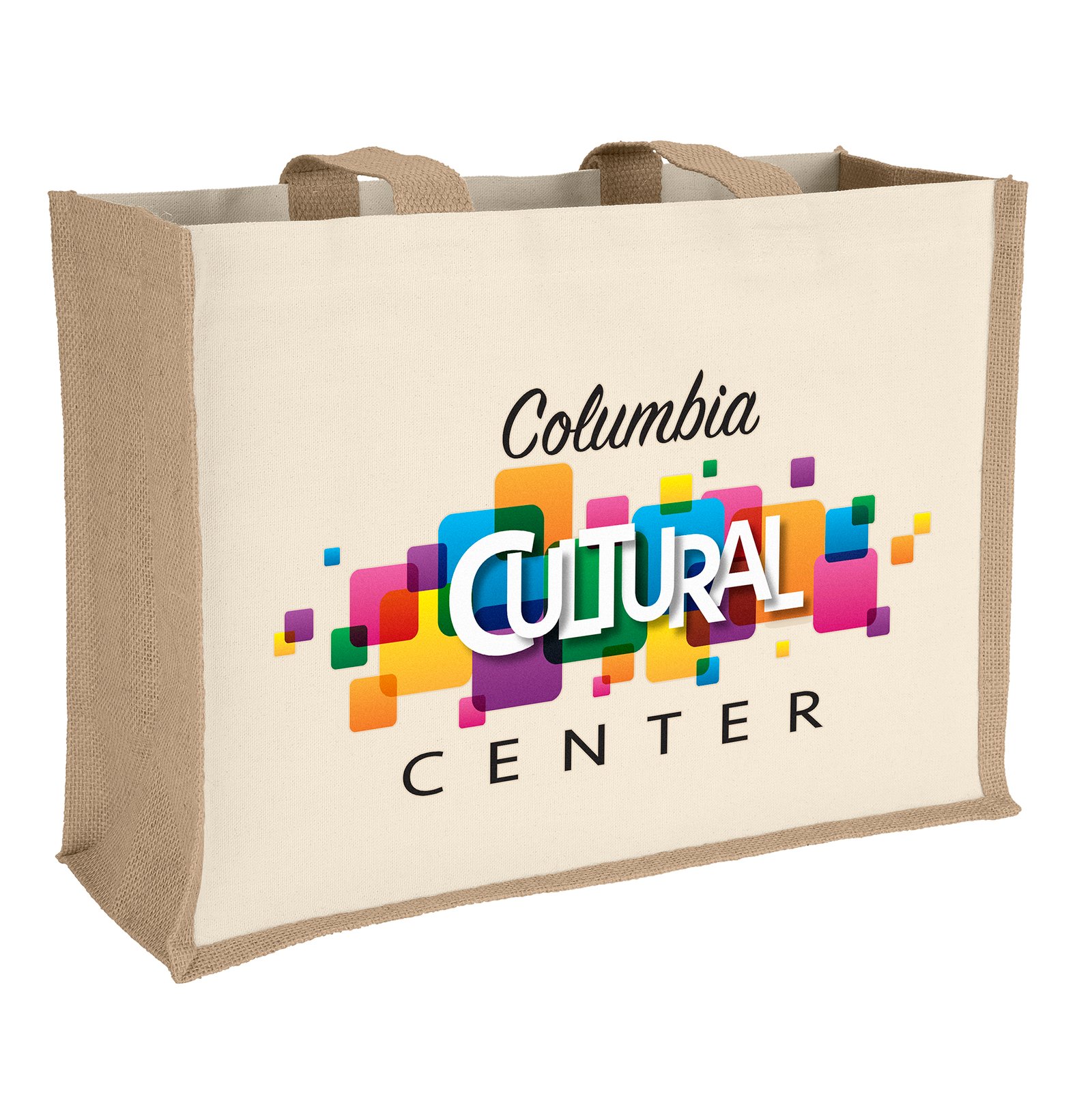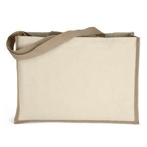 The Josephine™ Natural Tote combines durable 10-oz. cotton front and back panels with stylish natural-colored jute gussets and bottom. Interior gussets are laminated for added durability. Handles measure 1 1/4″W x 28″ long. *Due to the natural character of cotton fabric, slight color variances will occur between bags. 17″ W x 6″ D x 12″ H