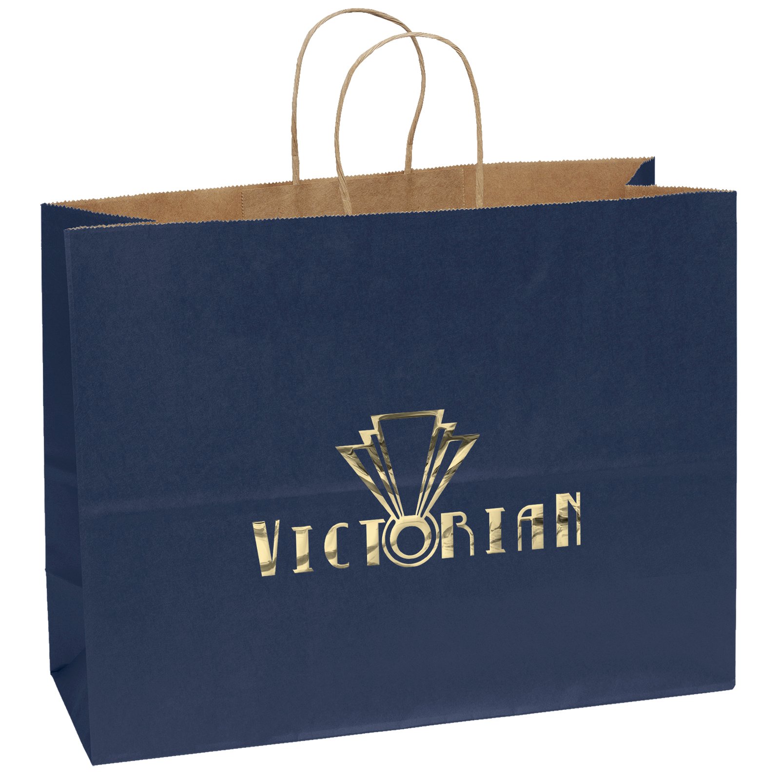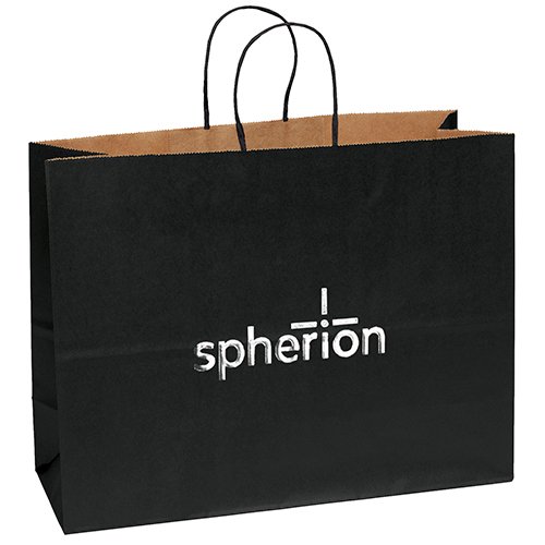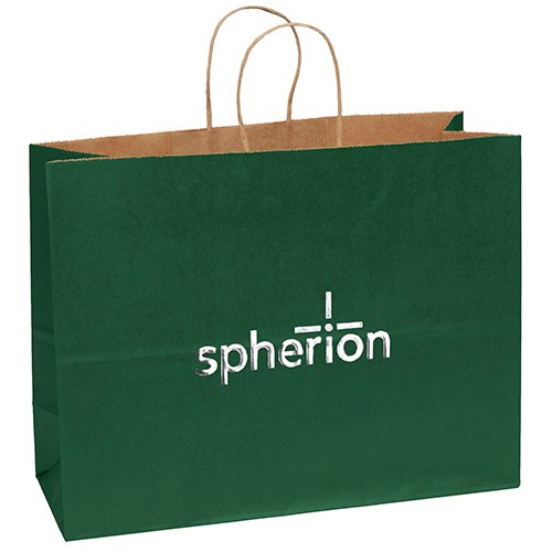 The affordable Judy Matte Shopper includes a serrated cut top and twisted paper handles. The bag is made from 100% recycled paper with a minimum of 60% recycled post-consumer content. 16″ W x 6″ D x 12″ H