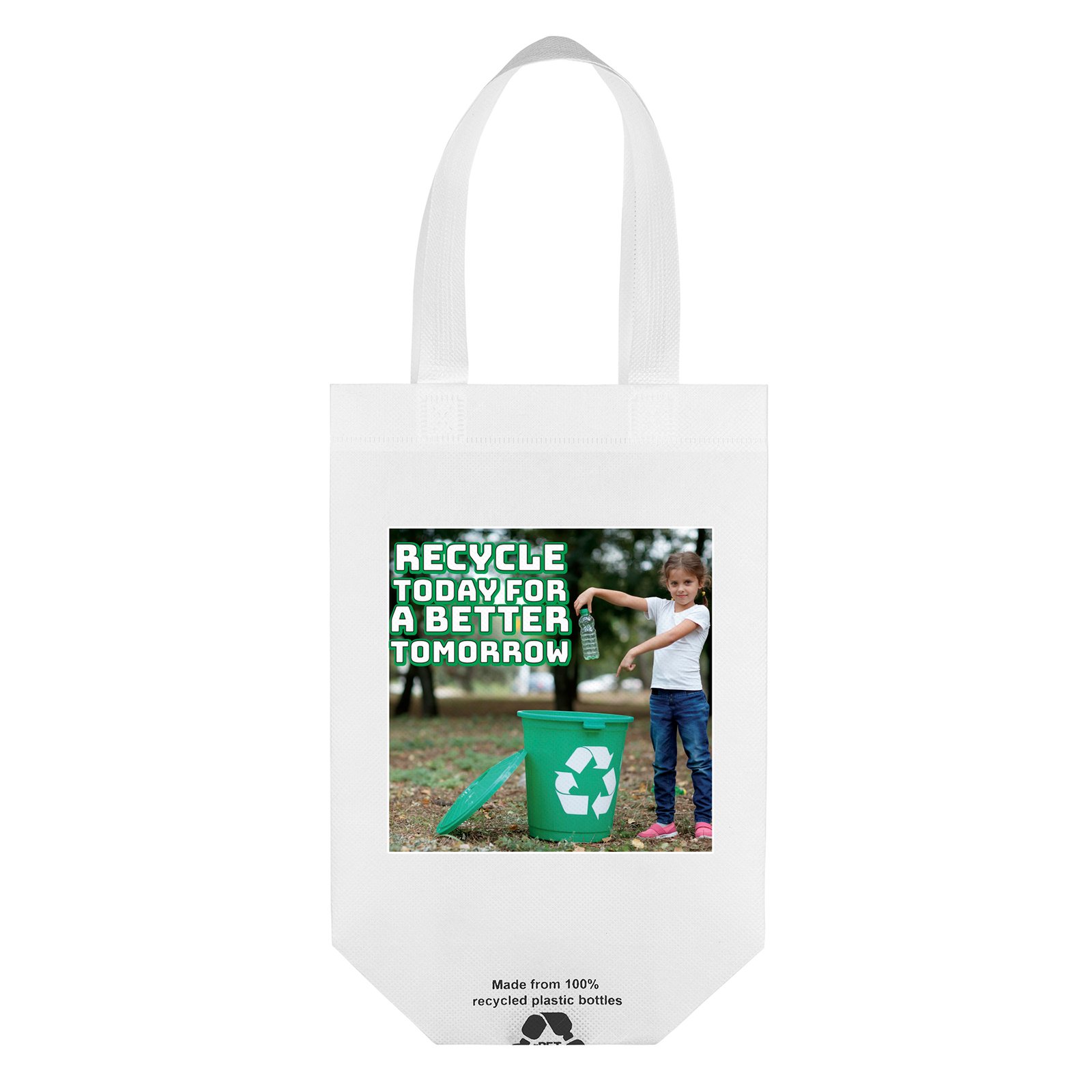 The eco-friendly Lake™ R-PET Non-Woven Tote is made from 100% post-consumer content and features sturdy 80 GSM material, heat-sealed handles, and a bottom gusset. An optional plastic bottom insert is available for purchase. Handles measure 1″W x 14″ long. 8″ W x 10″ H x 4″ D