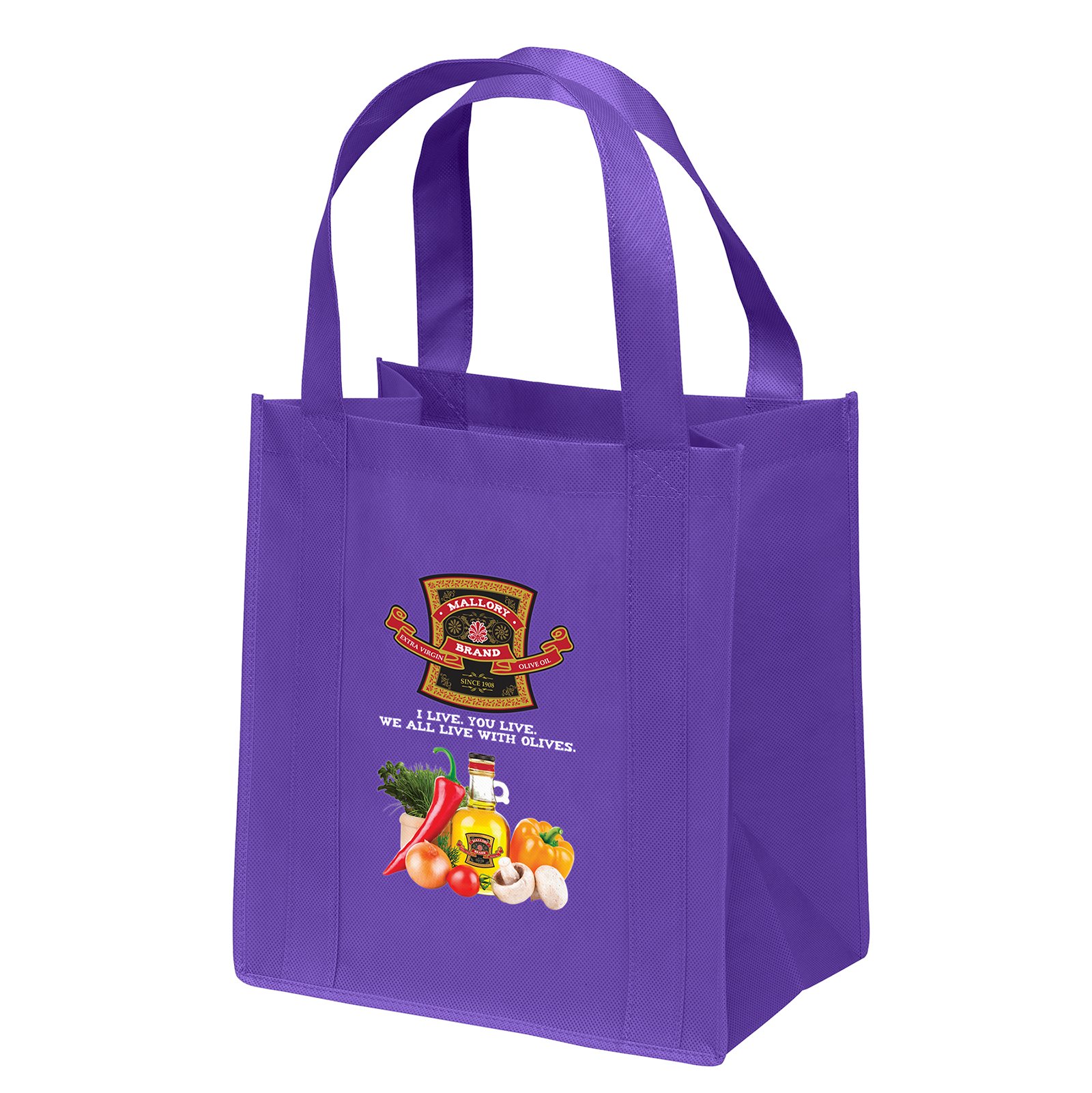 The best-selling Little Thunder® grocery tote offers unsurpassed quality, durability, and flexibility. The Little Thunder is made with 100 GSM premium non-woven material, dual-reinforced handles, and a plastic bottom insert. Handles measure 1 1/4″W x 20″ long. 12″ W x 8″ D x 13″ H