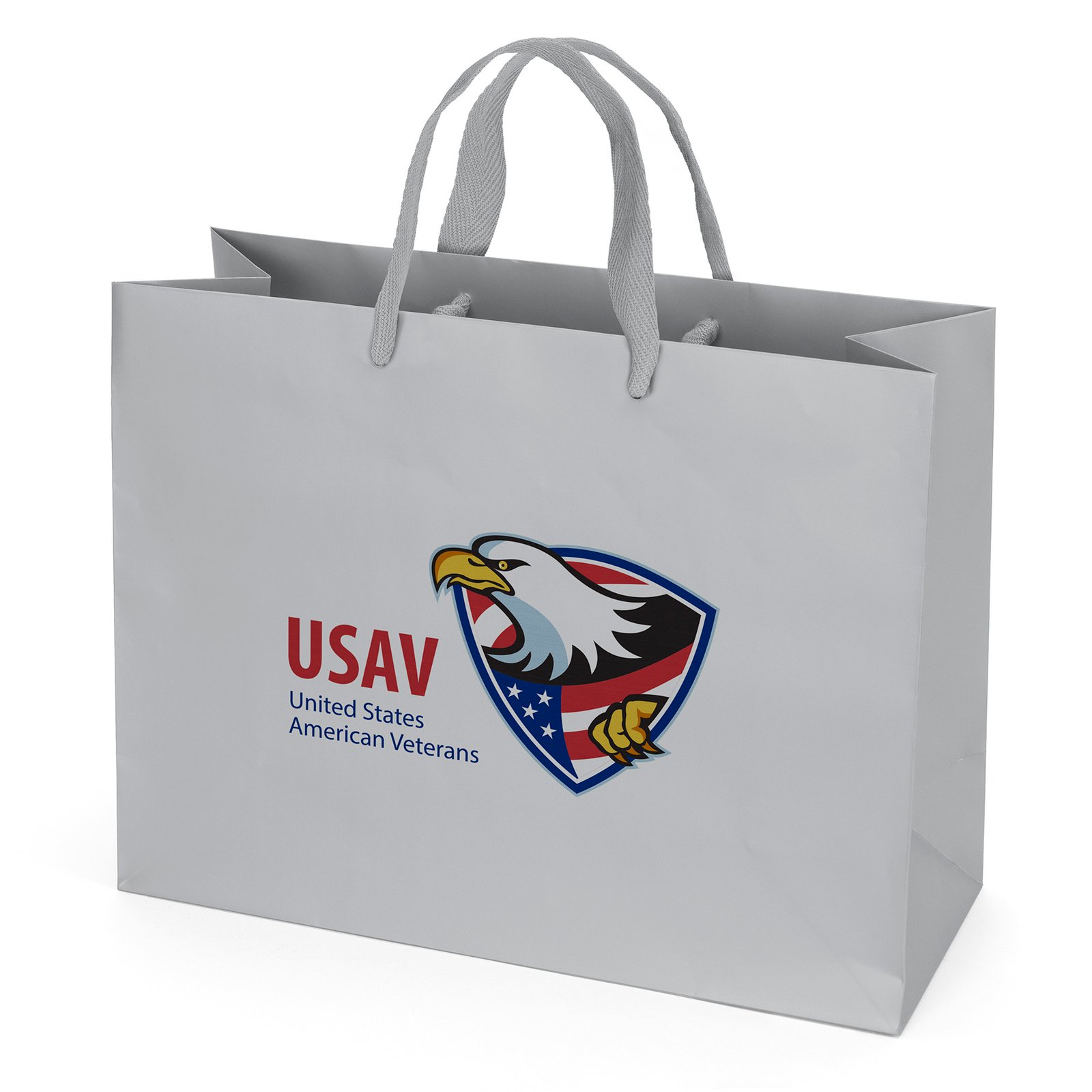 The London Matte Eurotote is made with matte-laminated paper and includes 14″ long woven handles, a reinforced fold-over top, and a cardboard bottom insert. 13″ W x 5″ D x 10″ H