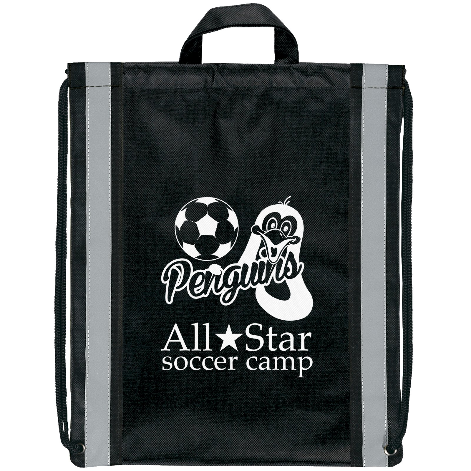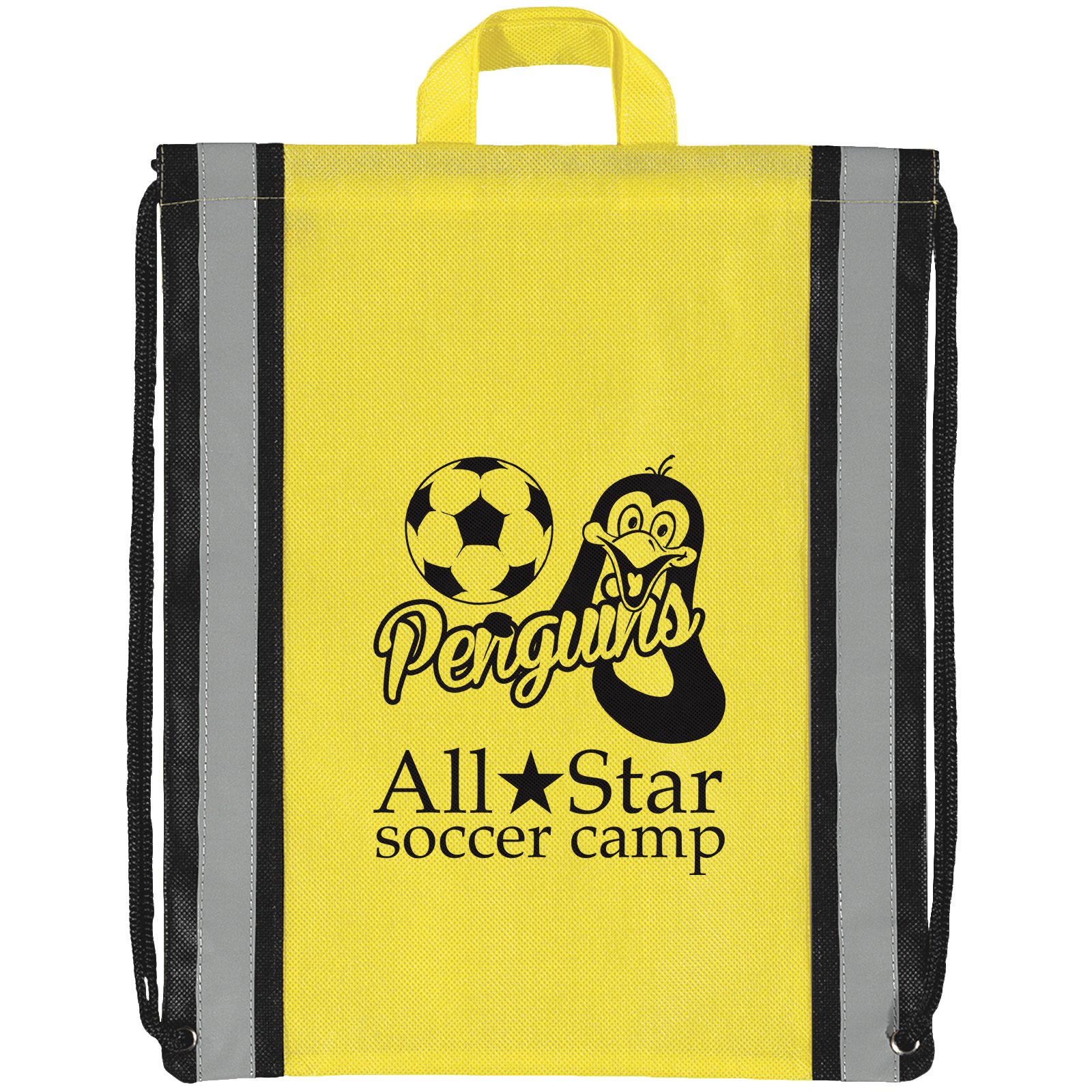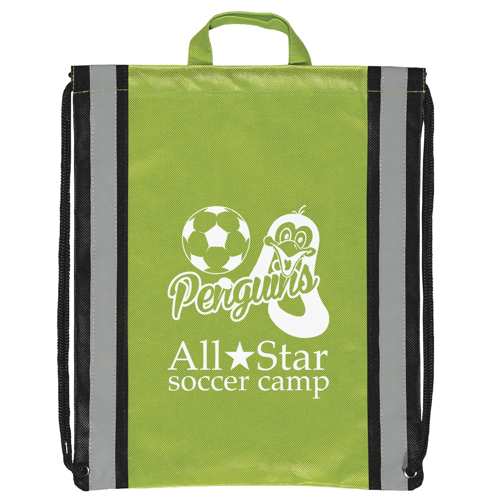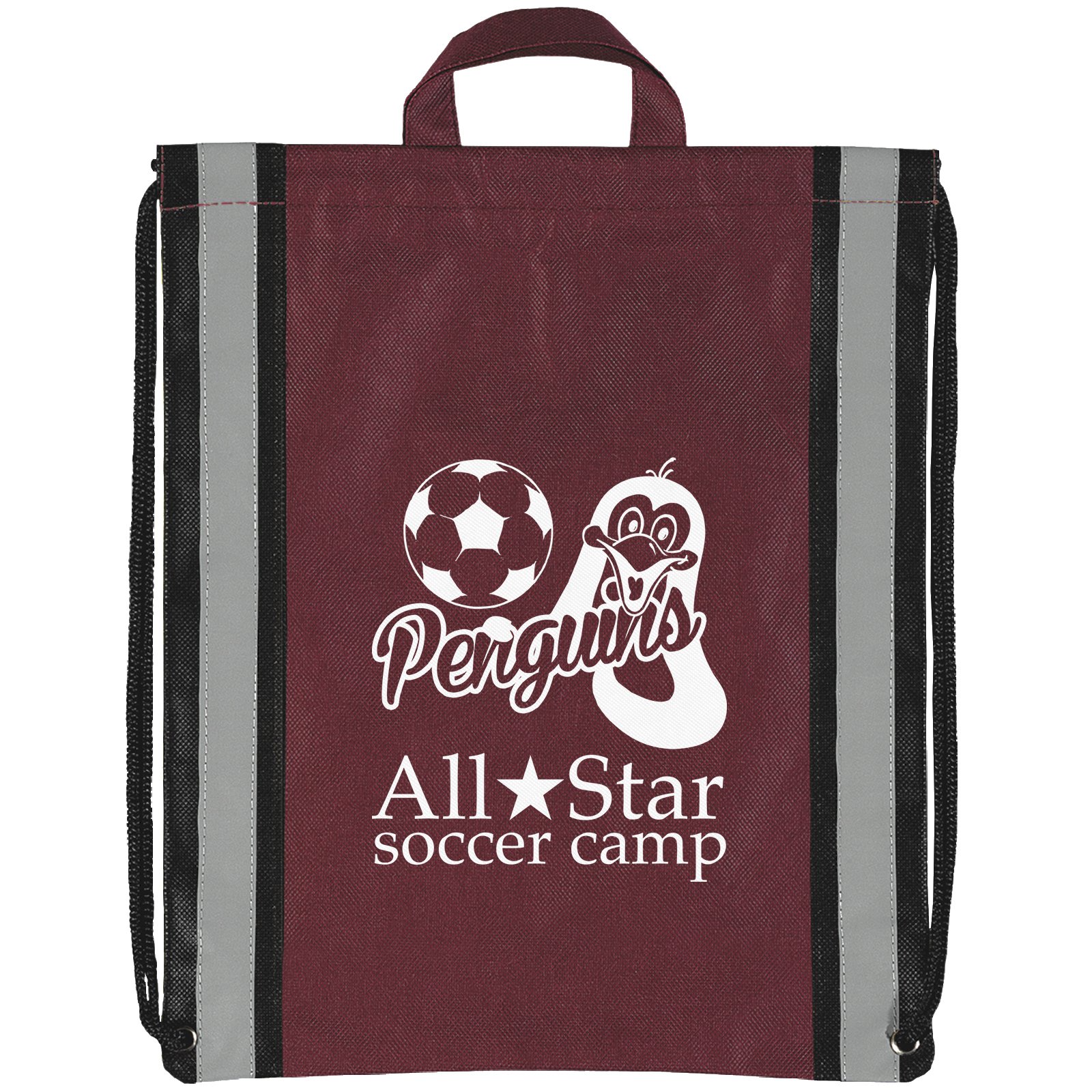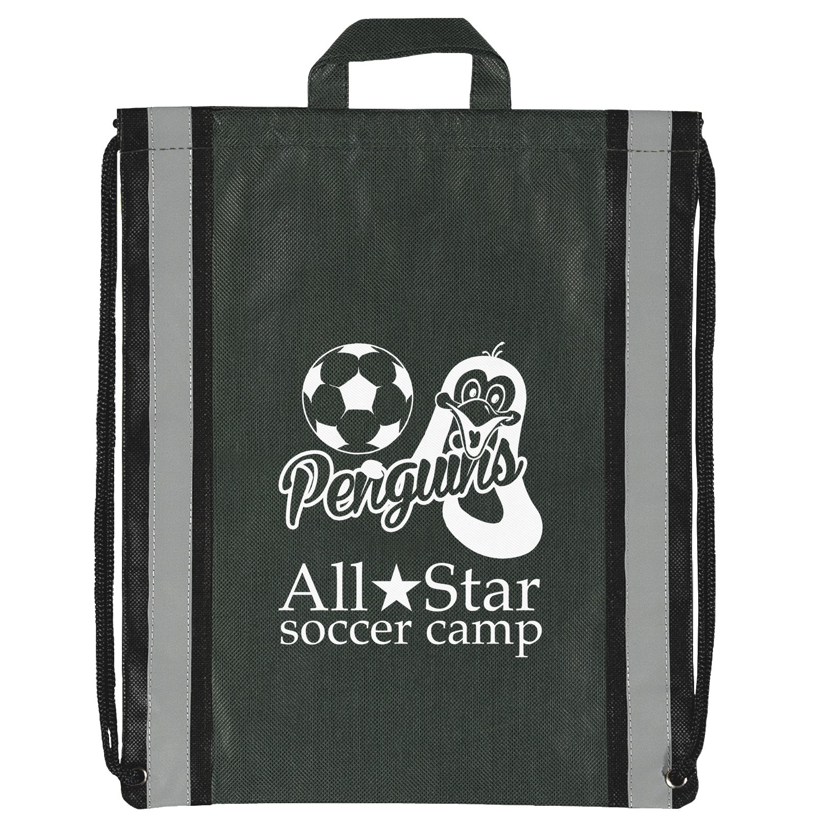 The 13W x 16H Marco Polo Explorer Backpack is made with premium non-woven material and features two 1″ reflective safety stripes, sturdy handles, black draw cords, reinforced corner grommets, and cinch closure. 13″ W x 16″ H