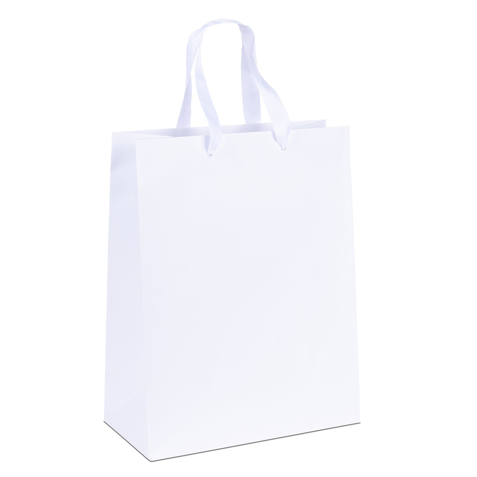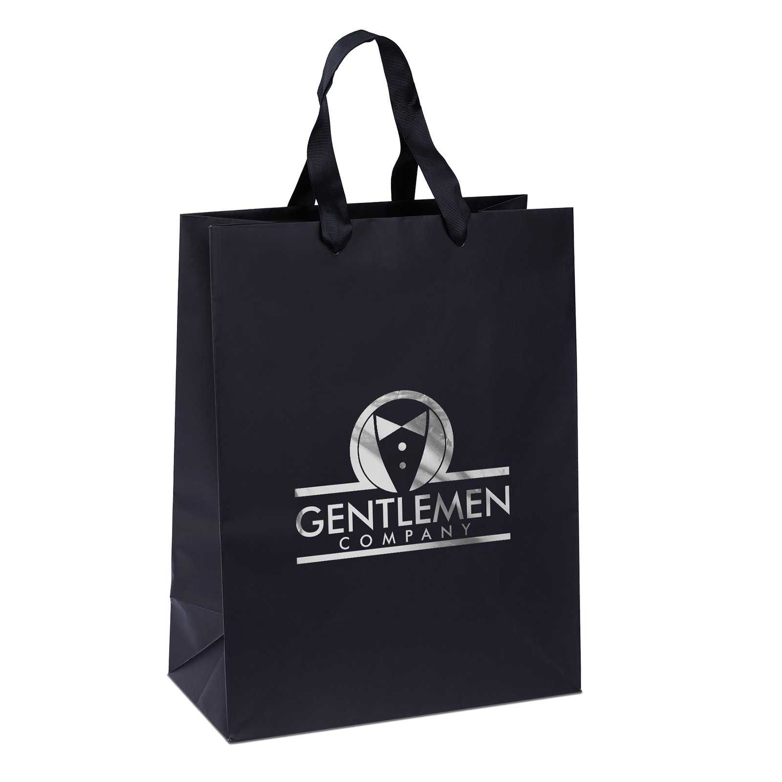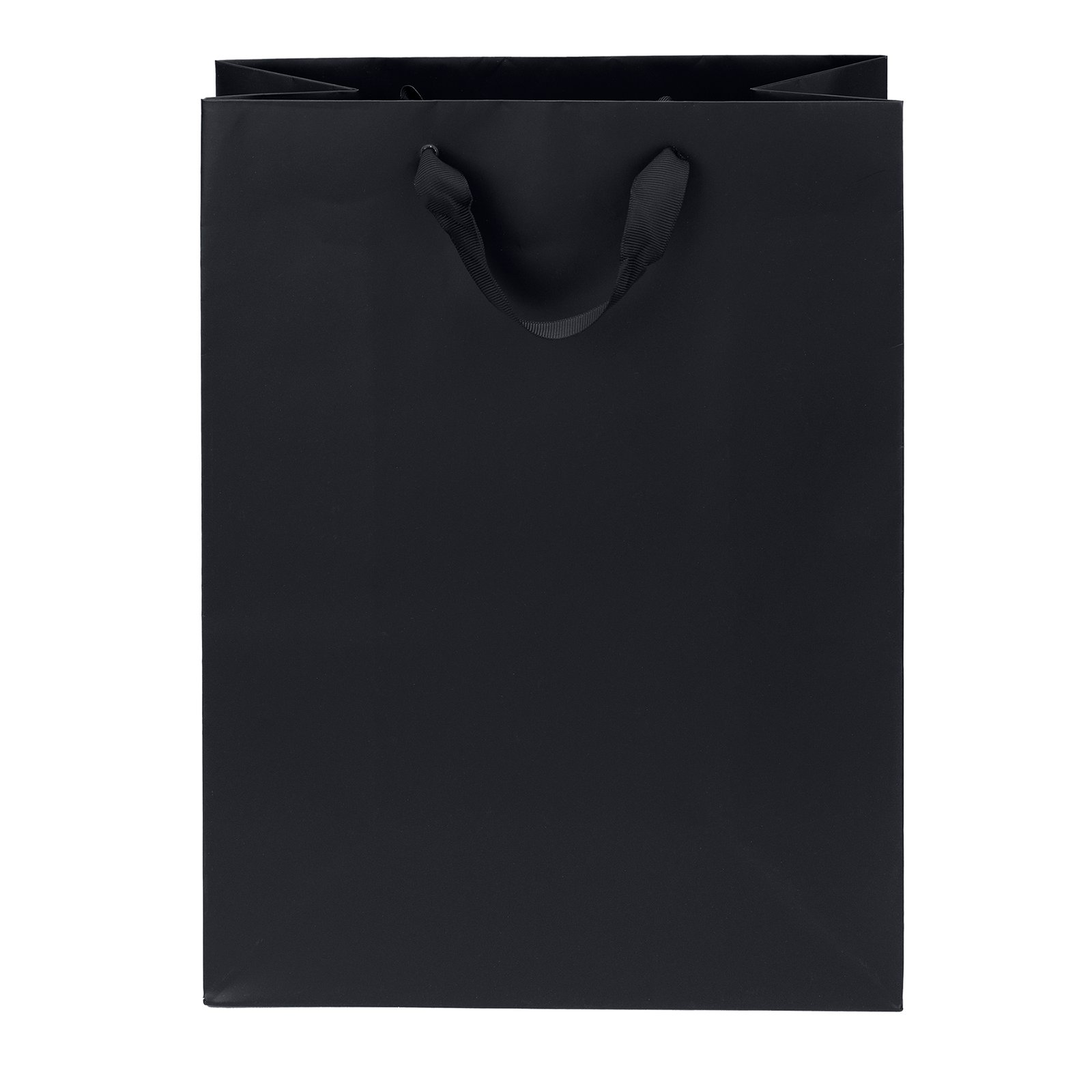 The Mary™ Ribbon-Handle Matte Eurotote is made with matte-laminated paper, grosgrain ribbon handles, a reinforced fold-over top, and a cardboard bottom insert. 10″ W x 5″ D x 13″ H