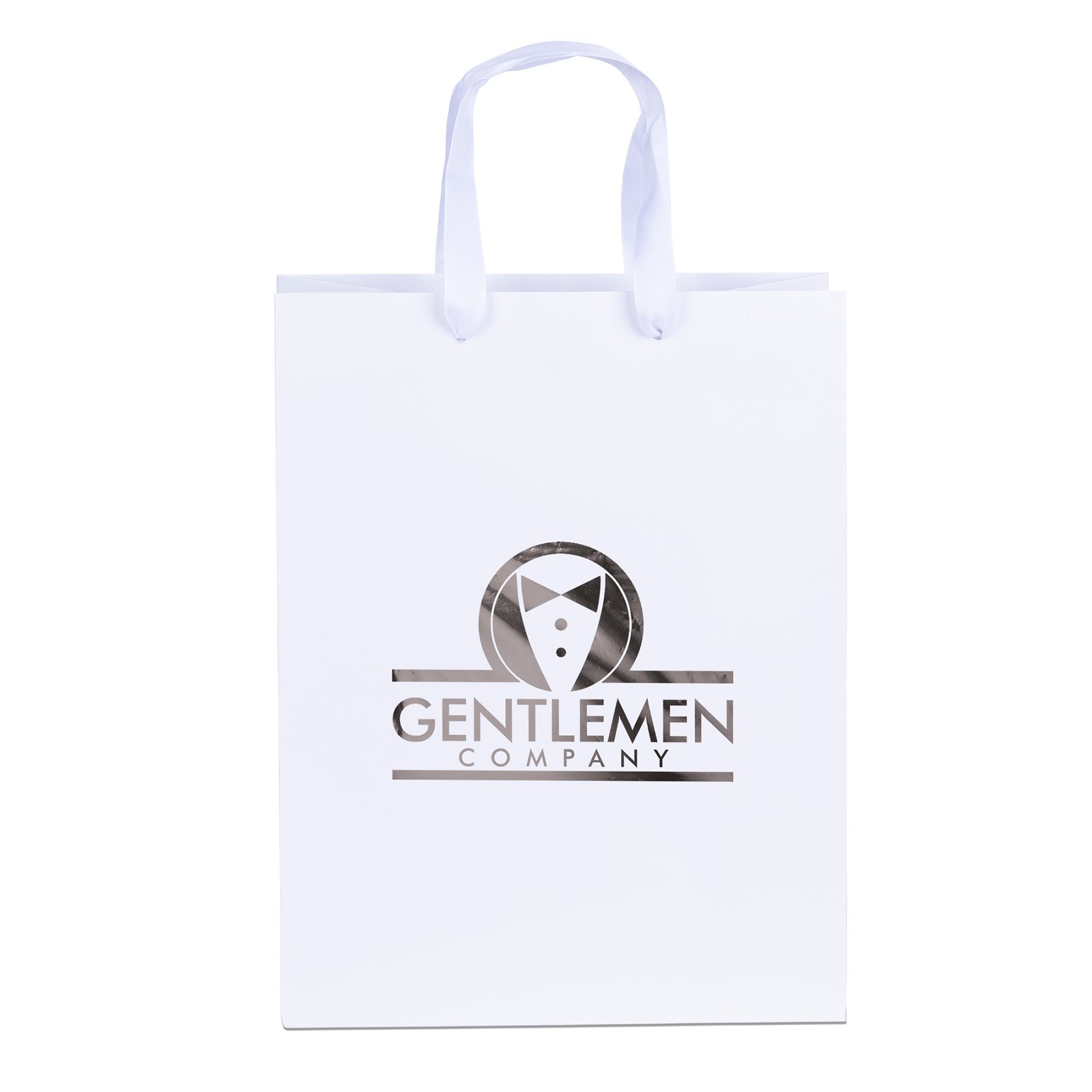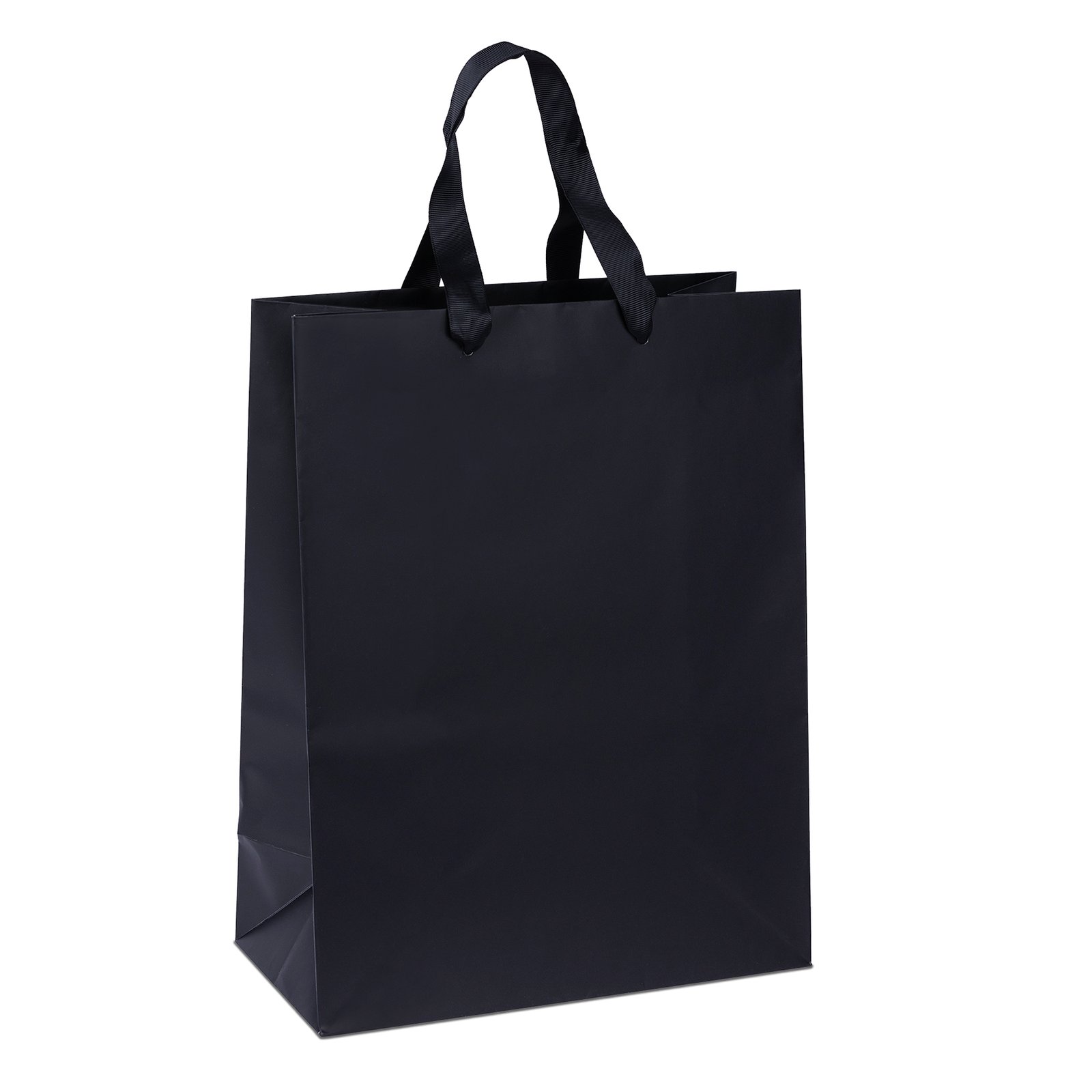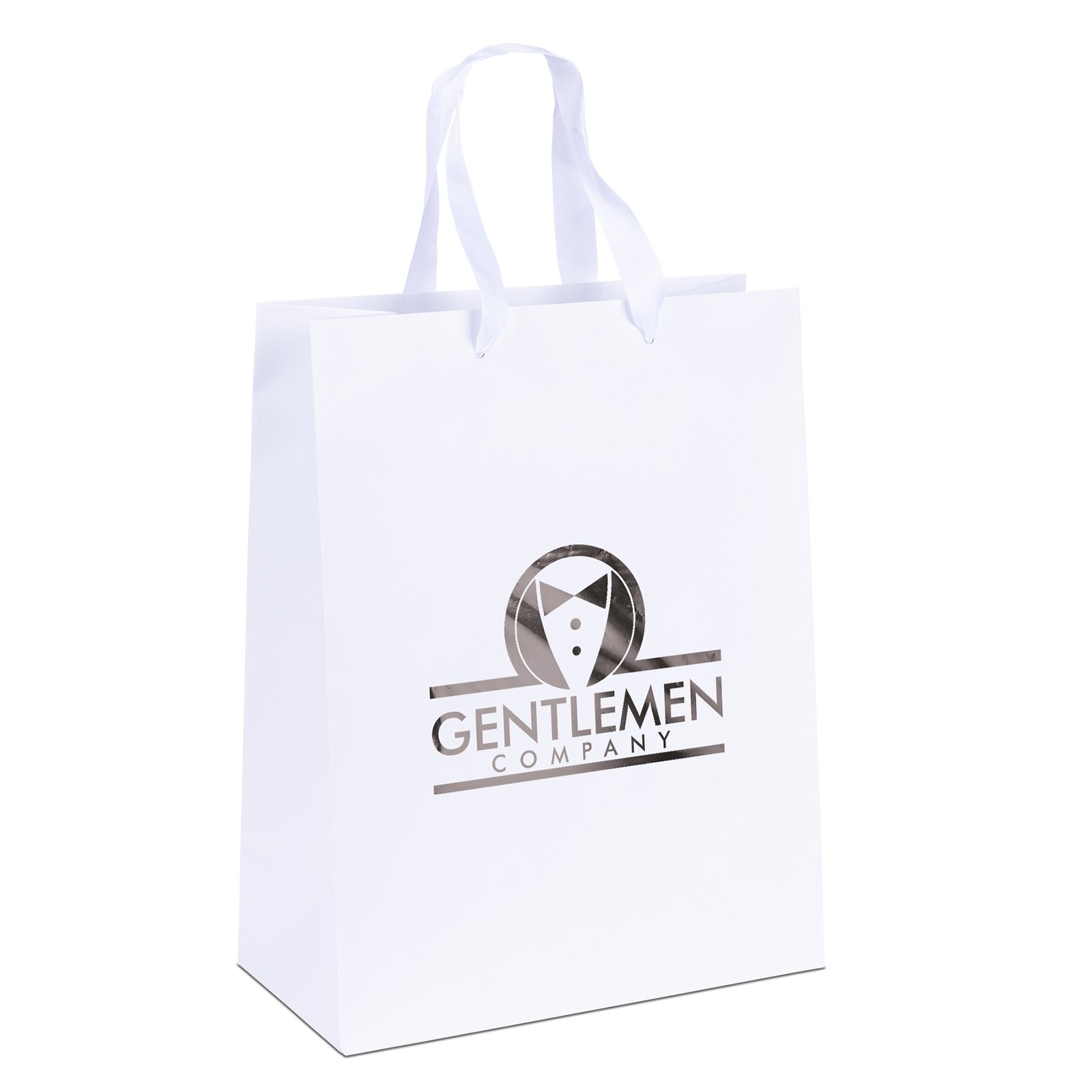The Mary™ Ribbon-Handle Matte Eurotote is made with matte-laminated paper, grosgrain ribbon handles, a reinforced fold-over top, and a cardboard bottom insert. 10″ W x 5″ D x 13″ H