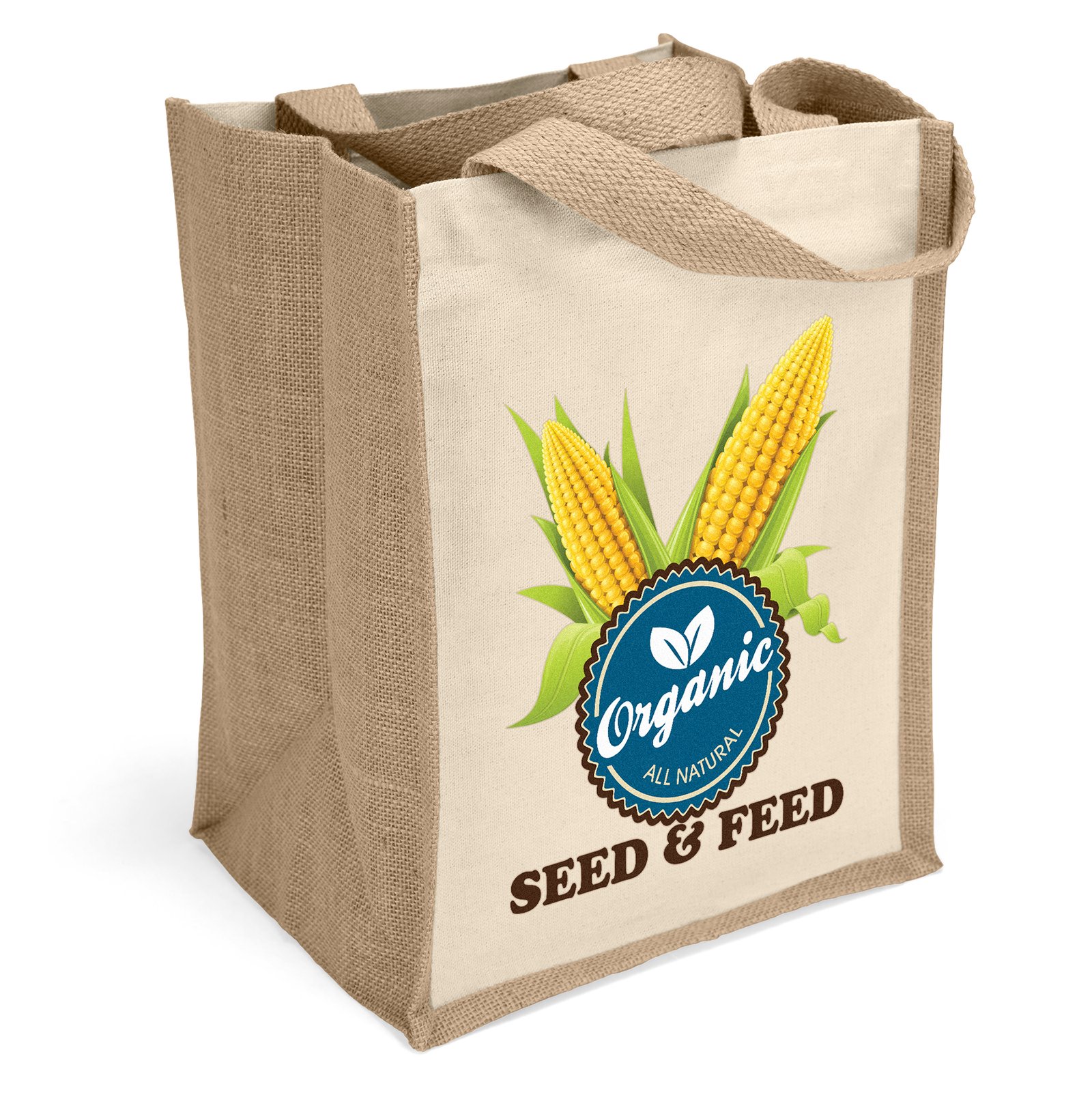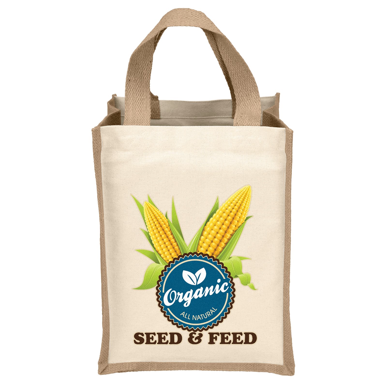 The Mimi™ Natural Tote combines durable 10-oz. cotton front and back panels with stylish natural-colored jute gussets and bottom. Interior gussets are laminated for added durability. Handles measure 1 1/4″W x 15″ long. *Due to the natural character of cotton fabric, slight color variances will occur between bags. 10″ W x 8″ D x 13″ H