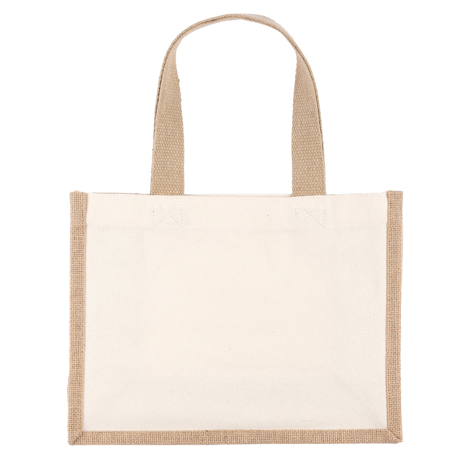 The Reyna™ Natural Tote combines durable 10-oz. cotton front and back panels with stylish natural-colored jute gussets and bottom. Interior gussets are laminated for added durability. Handles measure 1/14″ x 16″ long. *Due to the natural character of cotton fabric, slight color variances will occur between bags. 12″ W x 5″ D x 9″ H