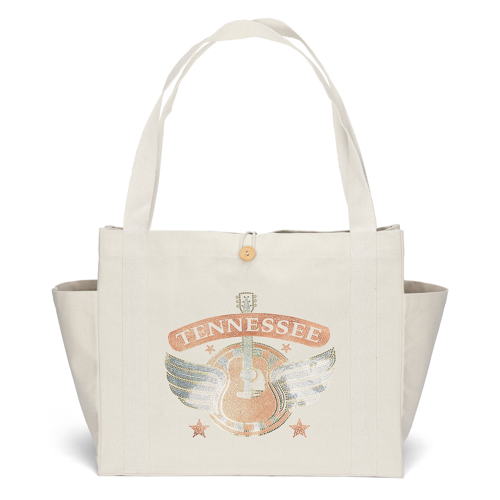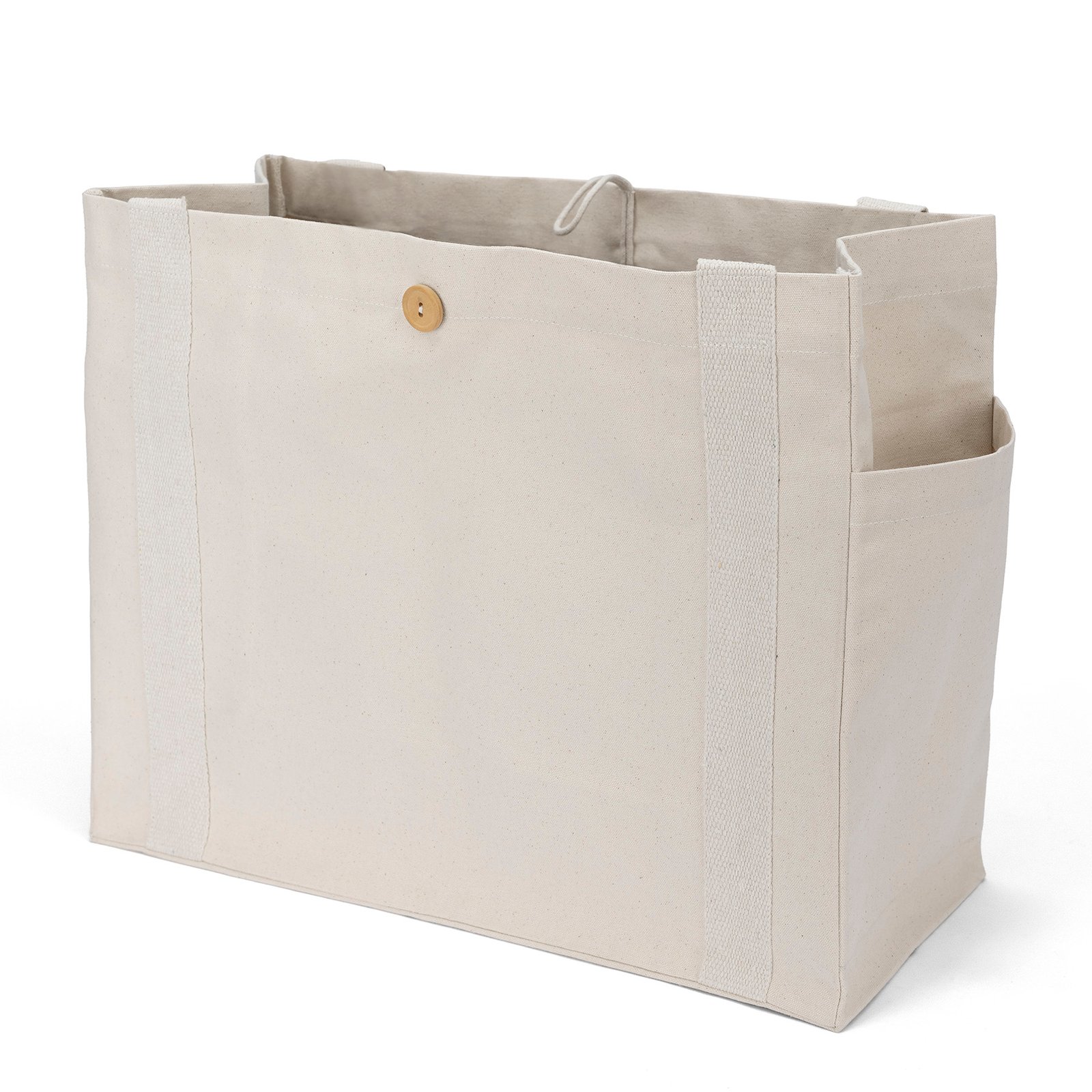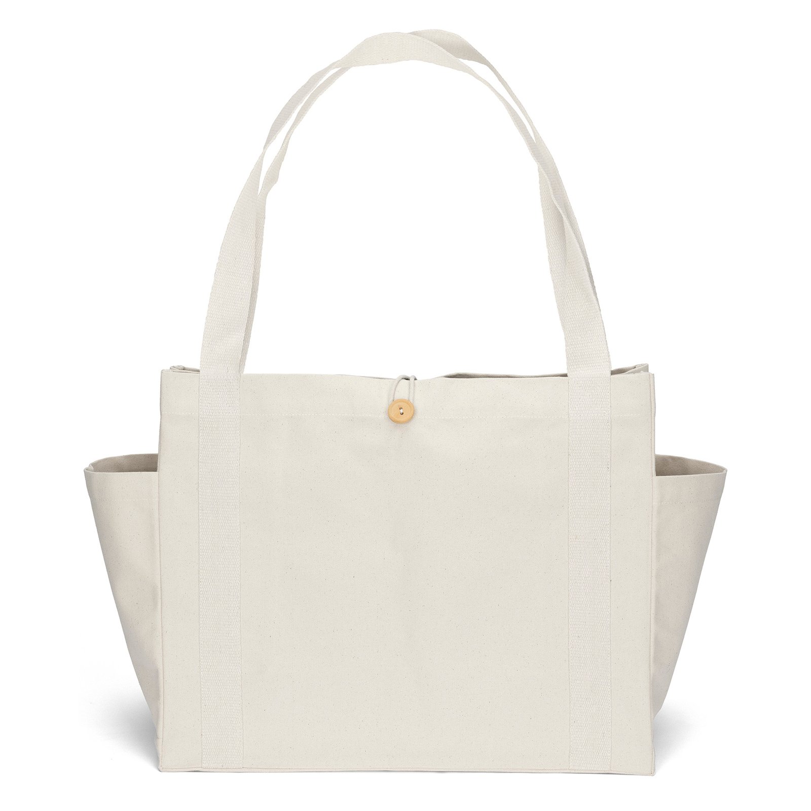 The premium Sandford™ Deluxe Canvas Tote is the ultimate everyday essential. The chic but heavyweight 14-oz. cotton bag is endlessly versatile and can be used everywhere from the beach to the supermarket to the daily commute. The oversized bag features a wooden button with loop closure, two exterior side pockets for convenient organization of smaller items, and generous 32″-long woven handles designed to fit comfortably on the shoulder, even over bulky clothing or coats. An optional plastic bottom insert is available for purchase. *Due to the natural character of cotton fabric, slight color variances will occur between bags. 18″ W x 8″ D x 15″ H