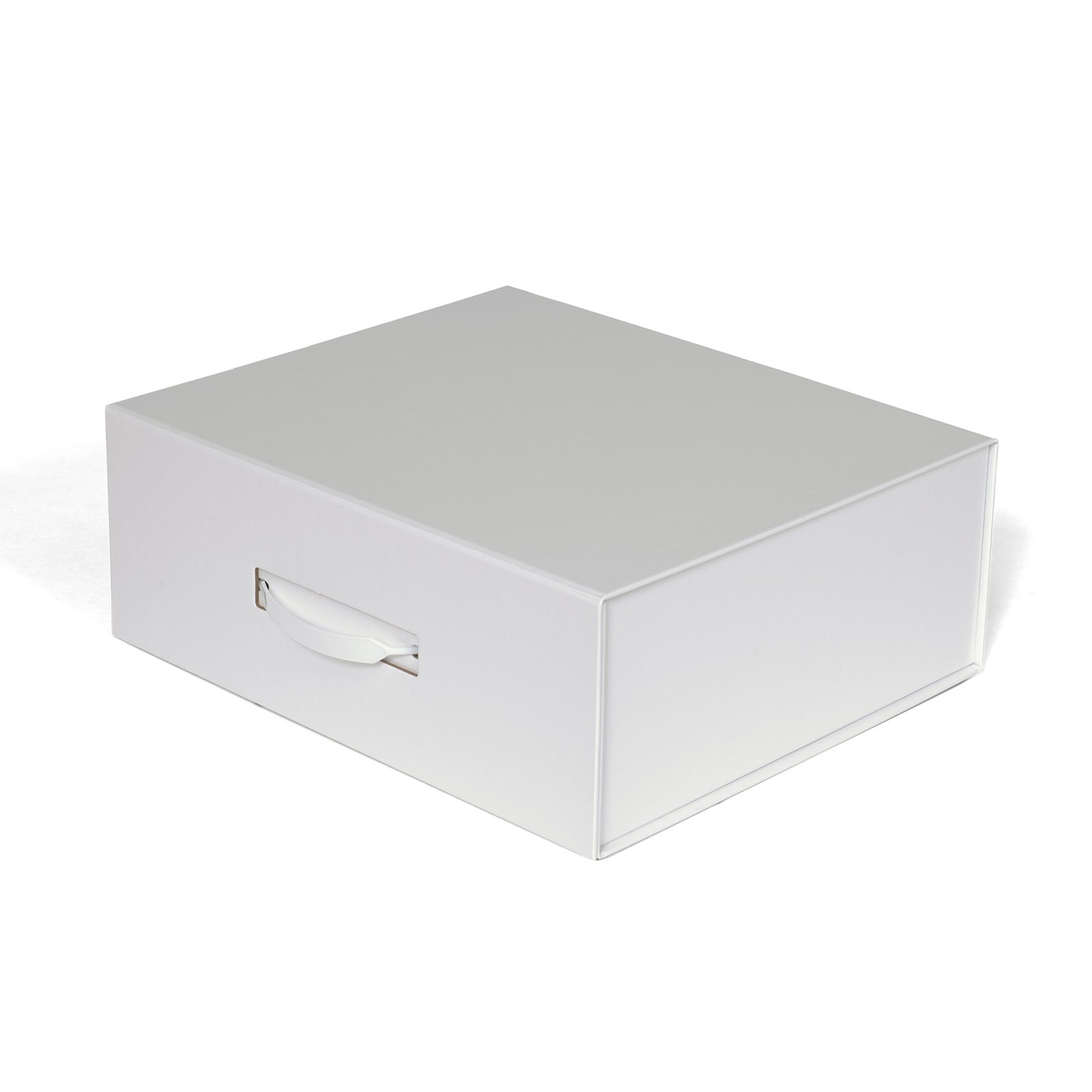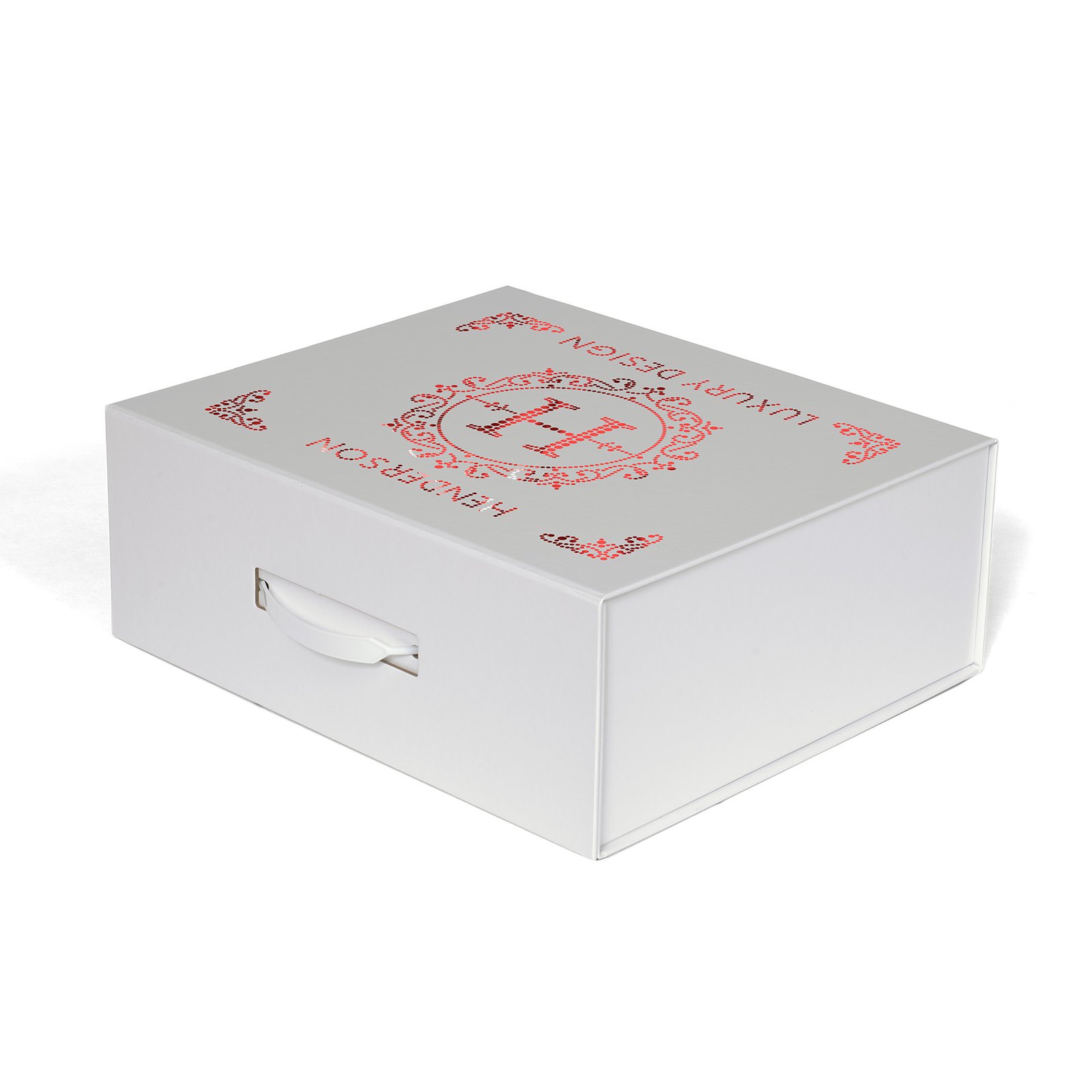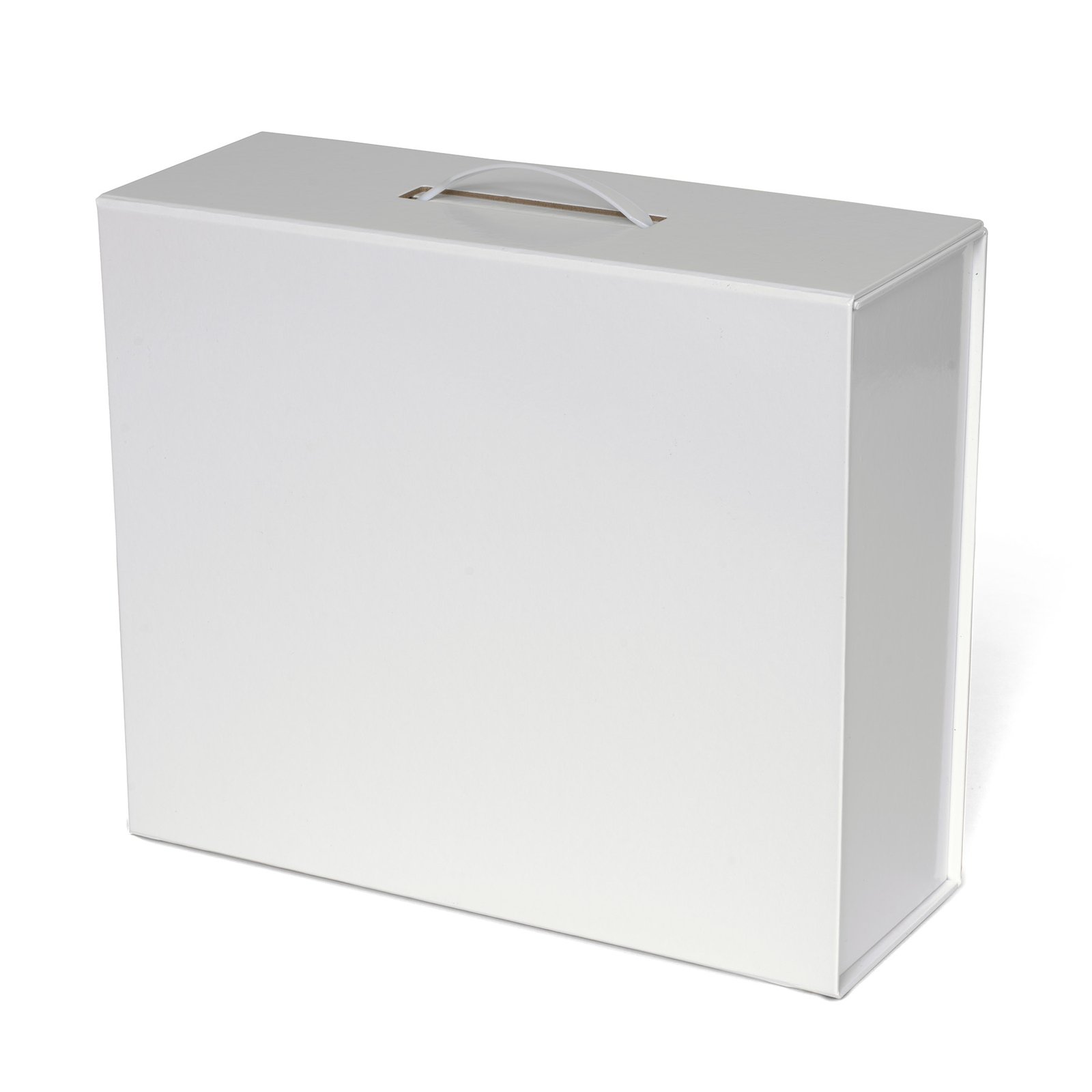 This decorative box collection offers an elegant way to package retail products, high-end gifts, kits, and more. The boxes are made with ultra-sturdy paper board and feature a magnetic flap closure that secures contents and creates a luxurious unboxing experience. The collapsible boxes fold flat for shipping and storage. Choose from four box styles with Foil Print or Sparkle imprint options on the top lid. Features a white plastic carrying handle. 12 1/4″ W x 10 1/4″ D x 4 1/2″ H