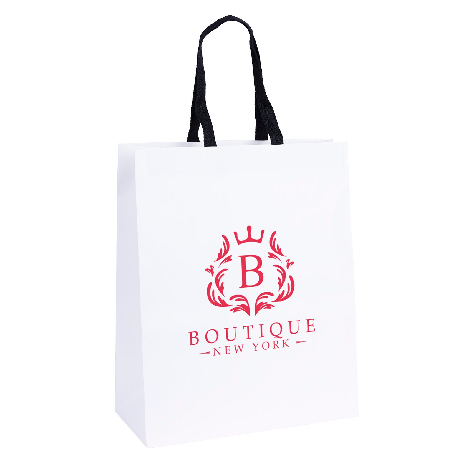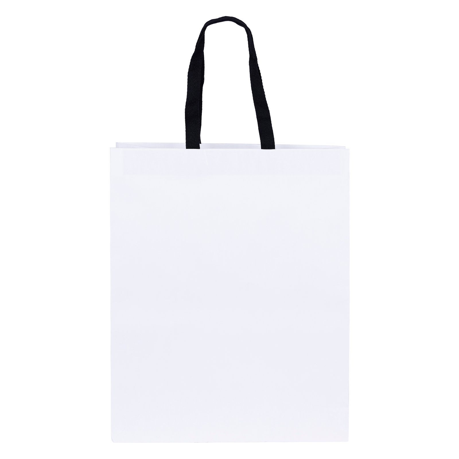 The Teak Woven-Handle White Eurotote is made with 120 GSM white paper and features distinctive black handles and a cardboard bottom insert. Handles measure 3/4″W x 14″ long. 13″ W x 6″ D x 16″ H
