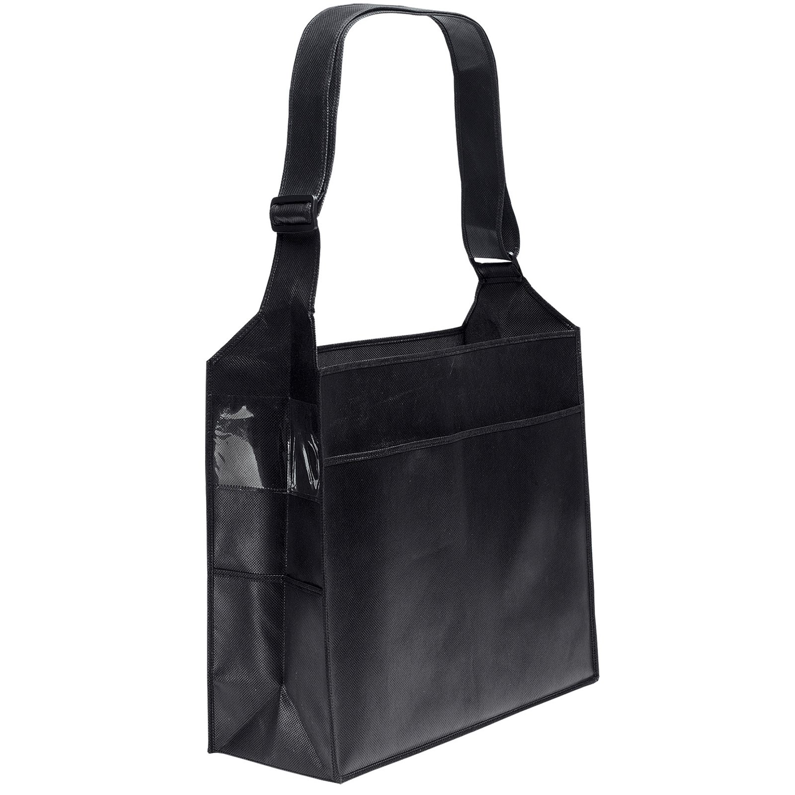 The non-woven Ultimate™ Tote is a premium trade show and conference bag. The 52″ long shoulder strap is adjustable for added comfort, and multiple pockets keep contents organized. A plastic bottom insert provides extra support. 16″ W x 6″ D x 14″ H