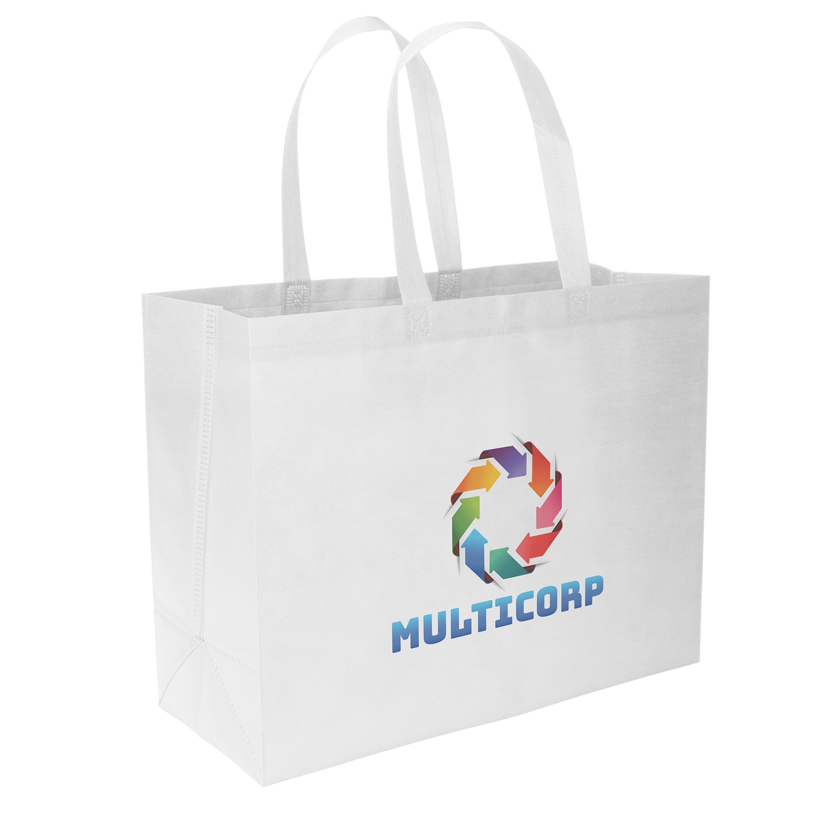 The affordable Value™ Budget Tote is made with 90 GSM non-woven material and features heat-sealed handles. An optional plastic bottom insert is available for purchase. Handles measure 1 1/2″W x 21″ long. 19″ W x 8″ D x 15″ H
